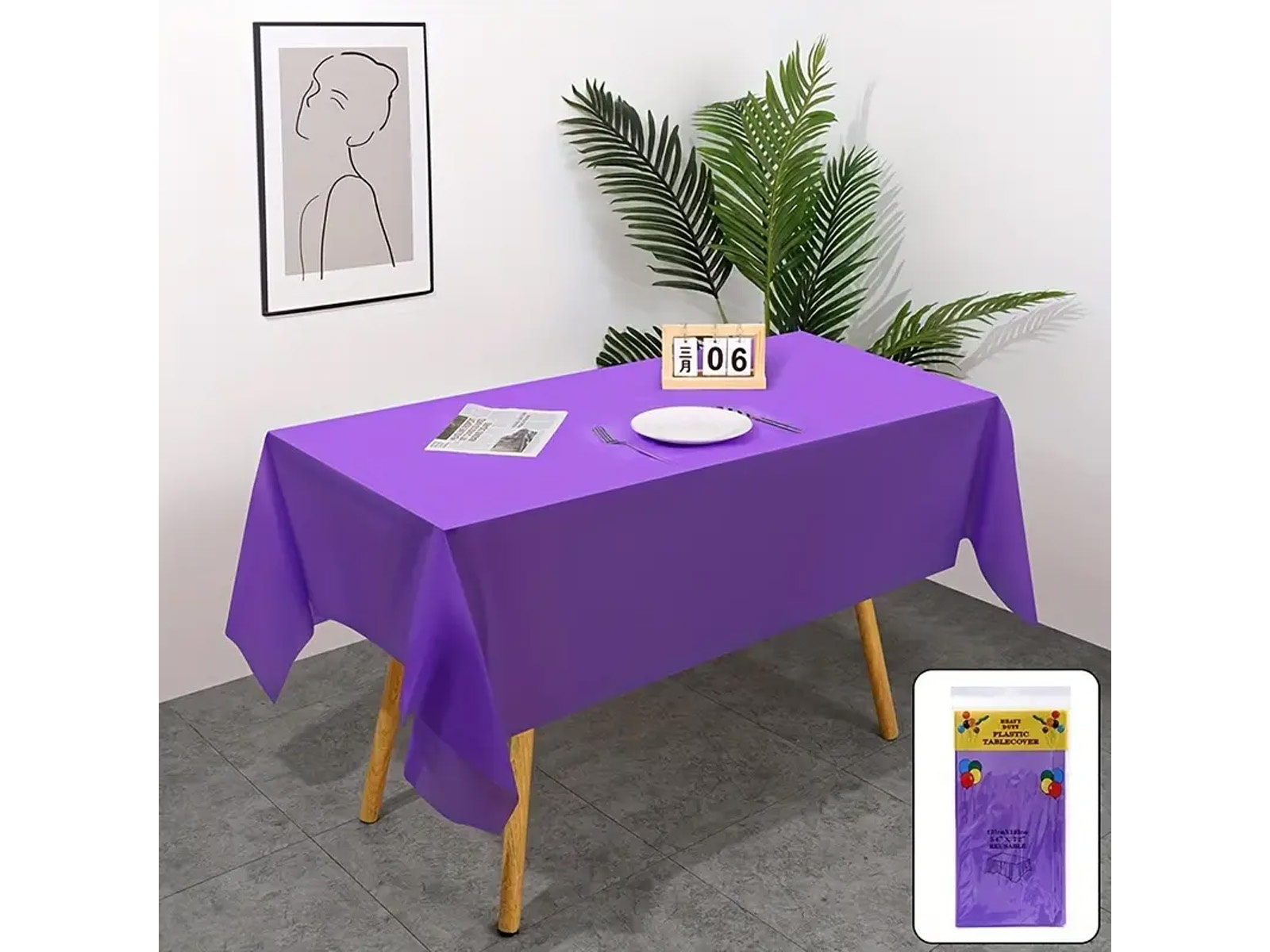 Față de masă cu folie mov - 137 x 274 cm - 1 buc.