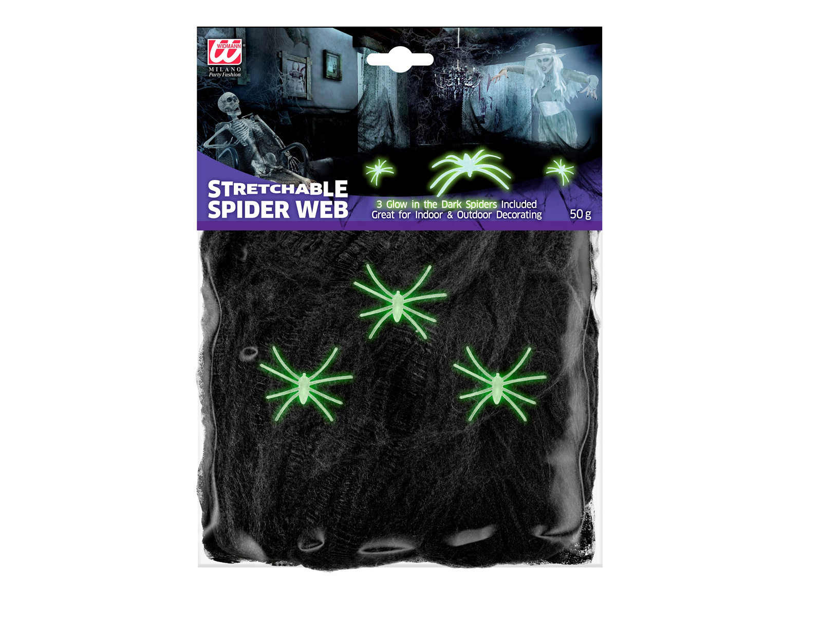 Pânză de păianjen neagră cu păianjeni fluorescenți - 1 op.
