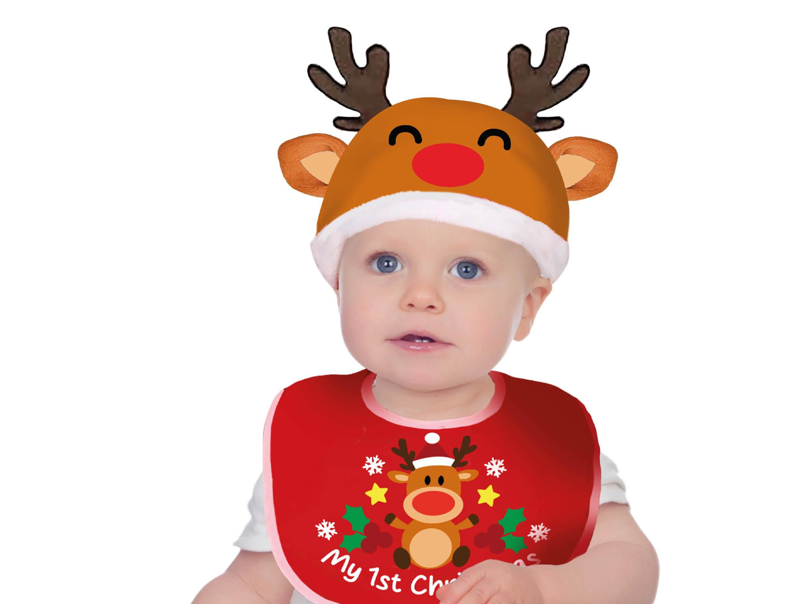 Set bavetă Crăciun + pălărie ren - 1 op.