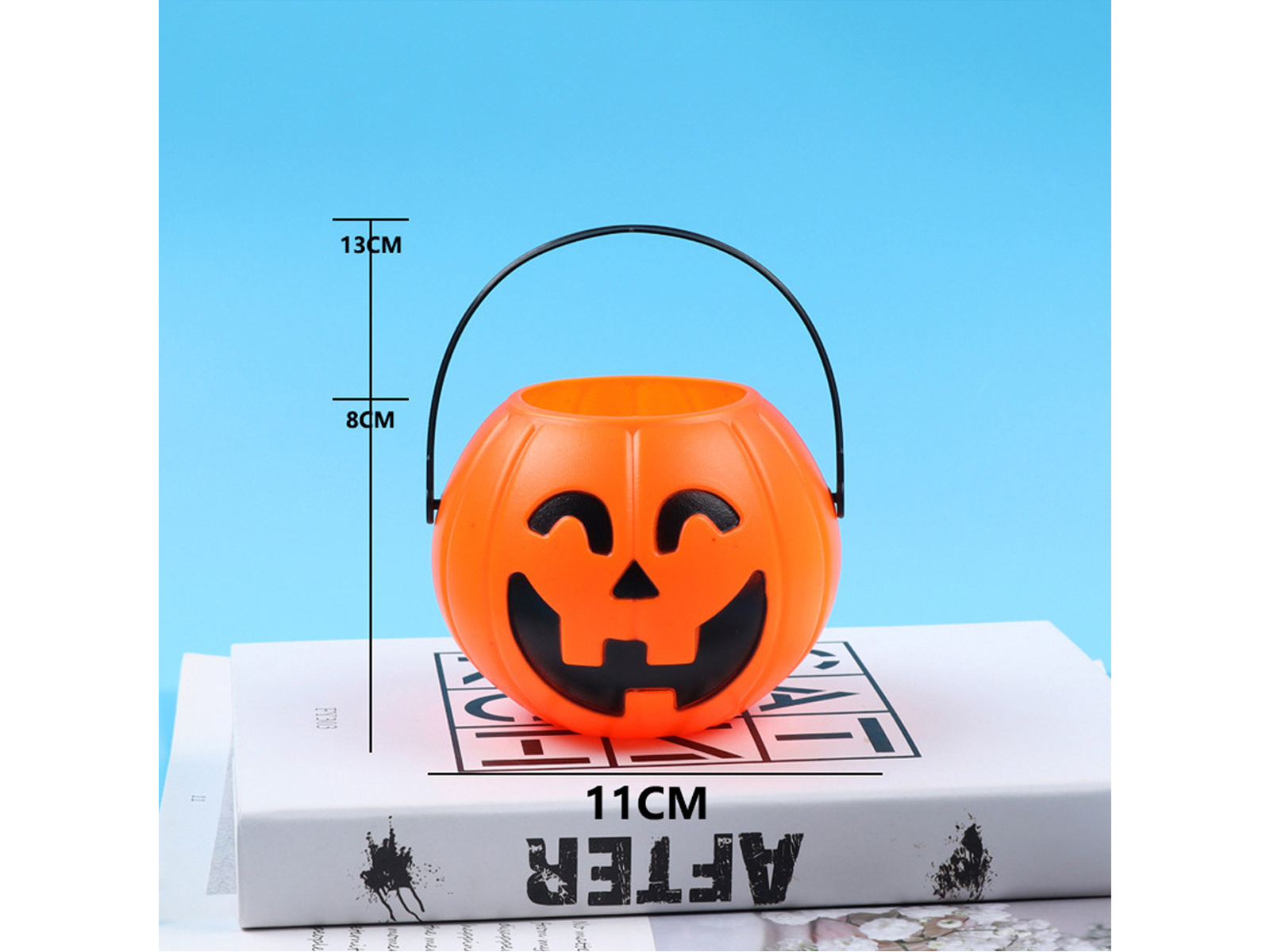 Cu un design adorabil cu tema dovleacului, găleata nu este doar funcțională, ci și un element decorativ excelent. Acesta poate fi folosit pentru a distribui dulciuri oaspeților care se schimbă sau chiar ca un mic ghiveci pentru florile de toamnă.