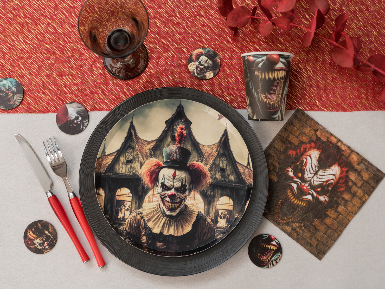 Șervețele clovn ucigaș de Halloween - 33 cm - 20 buc.
