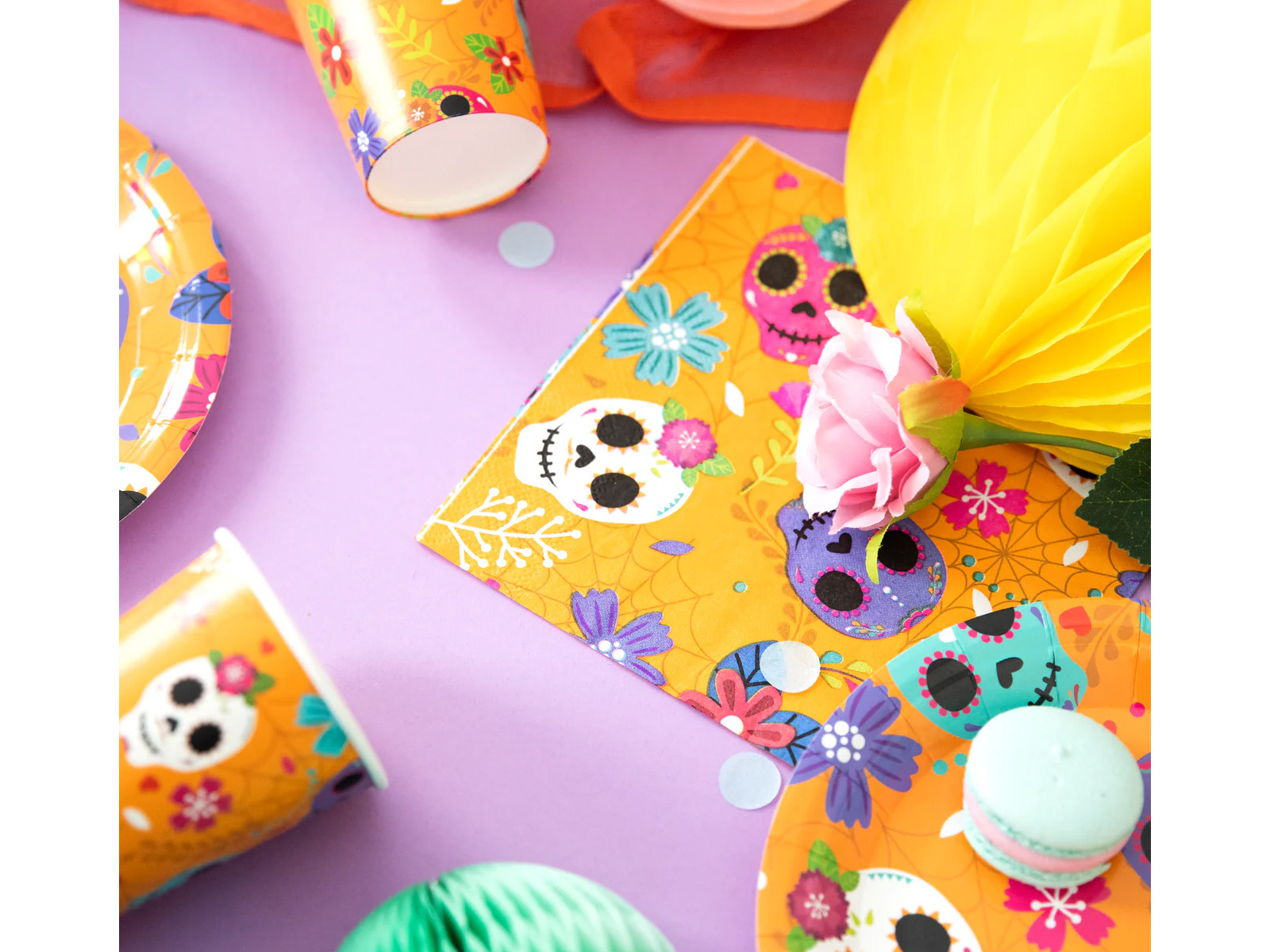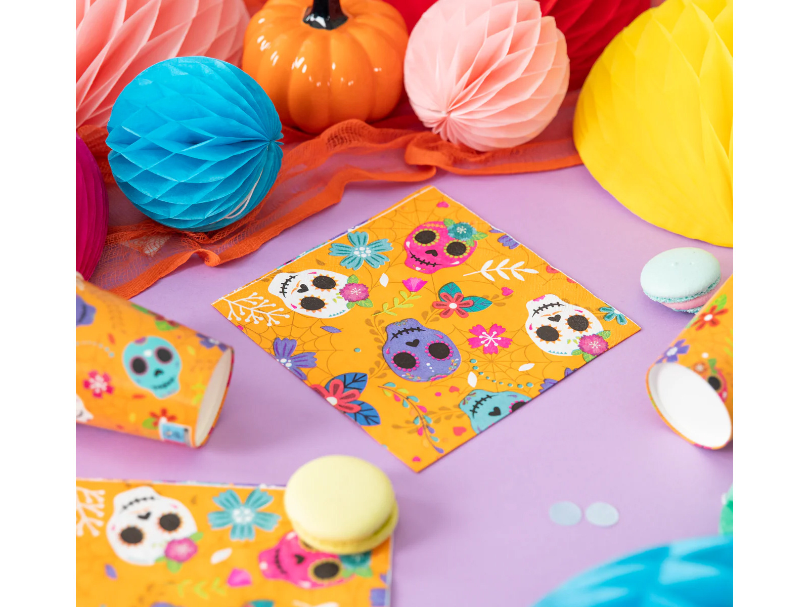 Fie că găzduiți o petrecere acasă sau la școală, șervețele cu craniu mexican sunt perfecte ca element decorativ care îi va încânta pe toți cei implicați.
