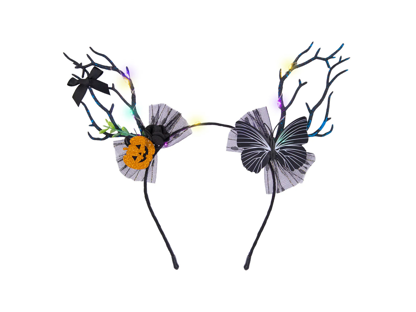 Pregătiți-vă pentru Halloween cu bentița noastră unică! Această brățară exclusivă pentru Halloween atrage atenția cu designul său neobișnuit. Este realizat din crenguțe delicate pe care sunt plasate lumini LED și decorațiuni în formă de dovleac și fluture, care adaugă farmec oricărei ținute.