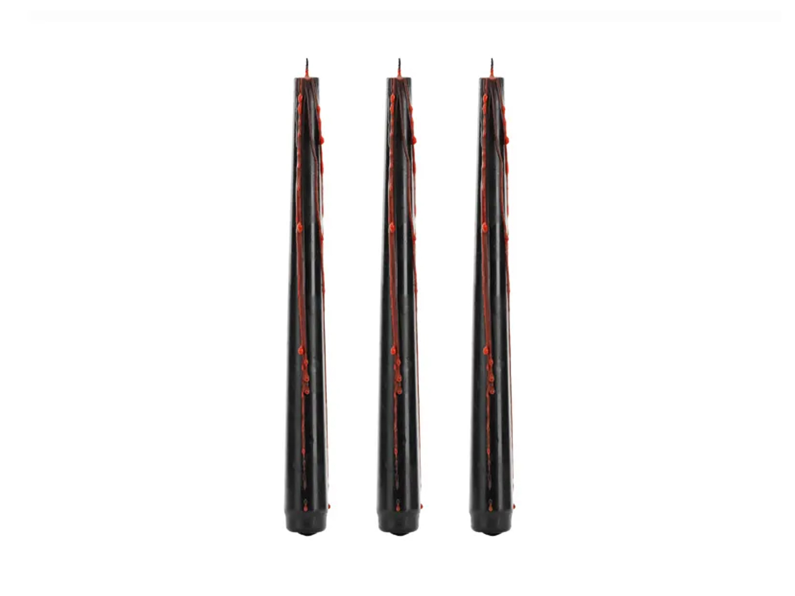 Oferă-le oaspeților tăi o experiență de neuitat cu Lumânări cu conuri sângerii, care sunt completarea perfectă pentru orice decor de Halloween. Aceste lumânări unice în negru surprinde pe toată lumea când începe să "sângereze" ceară roșie în timp ce fumează. Lungimea fiecărei lumânări este de 25 cm, asigurând o ardere de lungă durată și impresionantă, iar diametrul acestora este de aproximativ 2 cm.