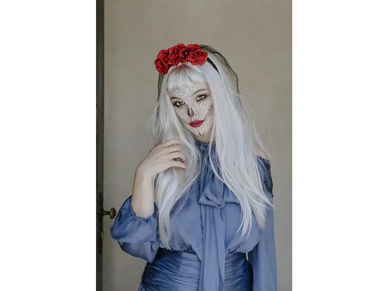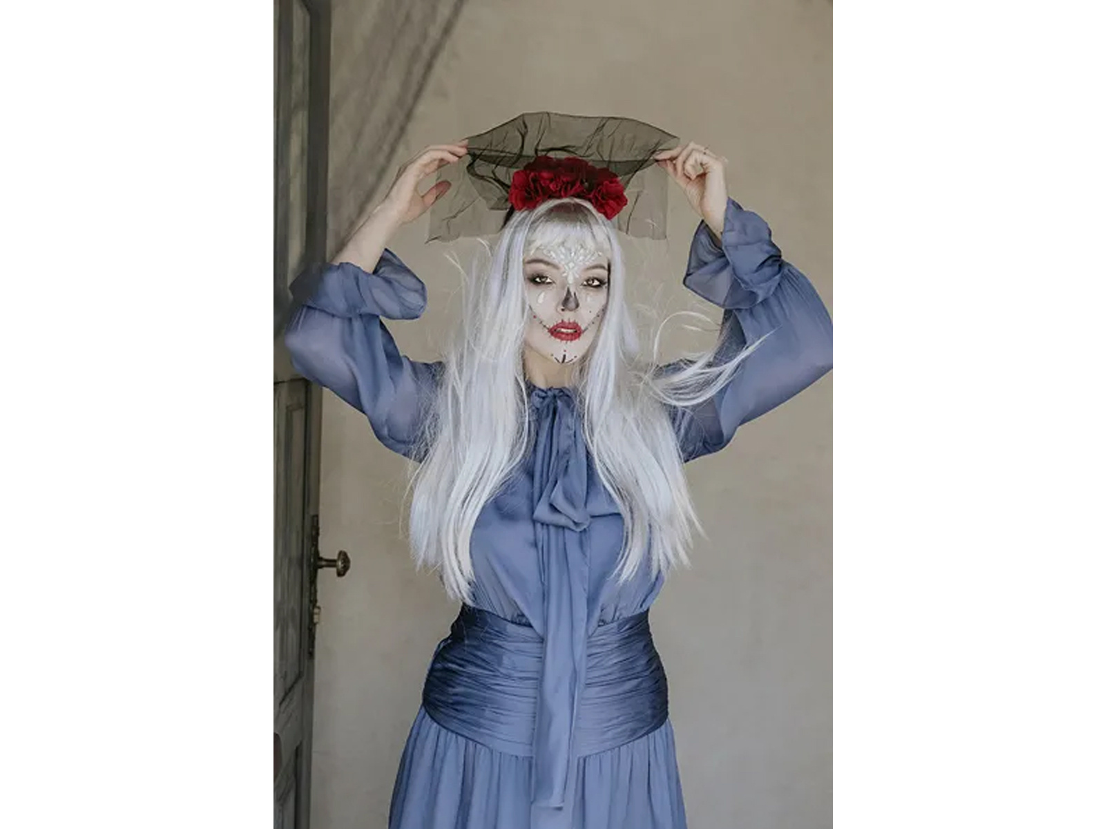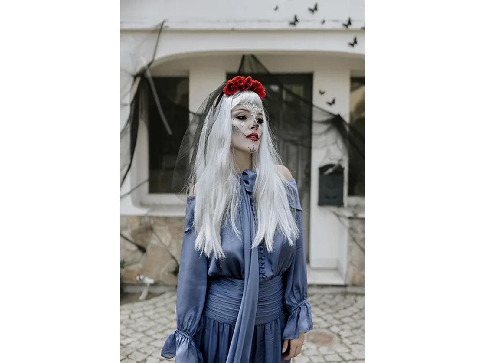 Transformați-vă într-o misterioasă doamnă a nopții cu Bentiță cu voal și trandafiri. Acest accesoriu unic este completarea perfectă pentru costumul tău de Halloween și nu numai. Voalul negru elegant, lung de 50 cm, se înfășoară ușor în jurul feței, adăugând o notă de misticism și eleganță. Bentița este împodobită cu chintesența romantismului - trei trandafiri roșii care atrag atenția și fac orice ținută specială.