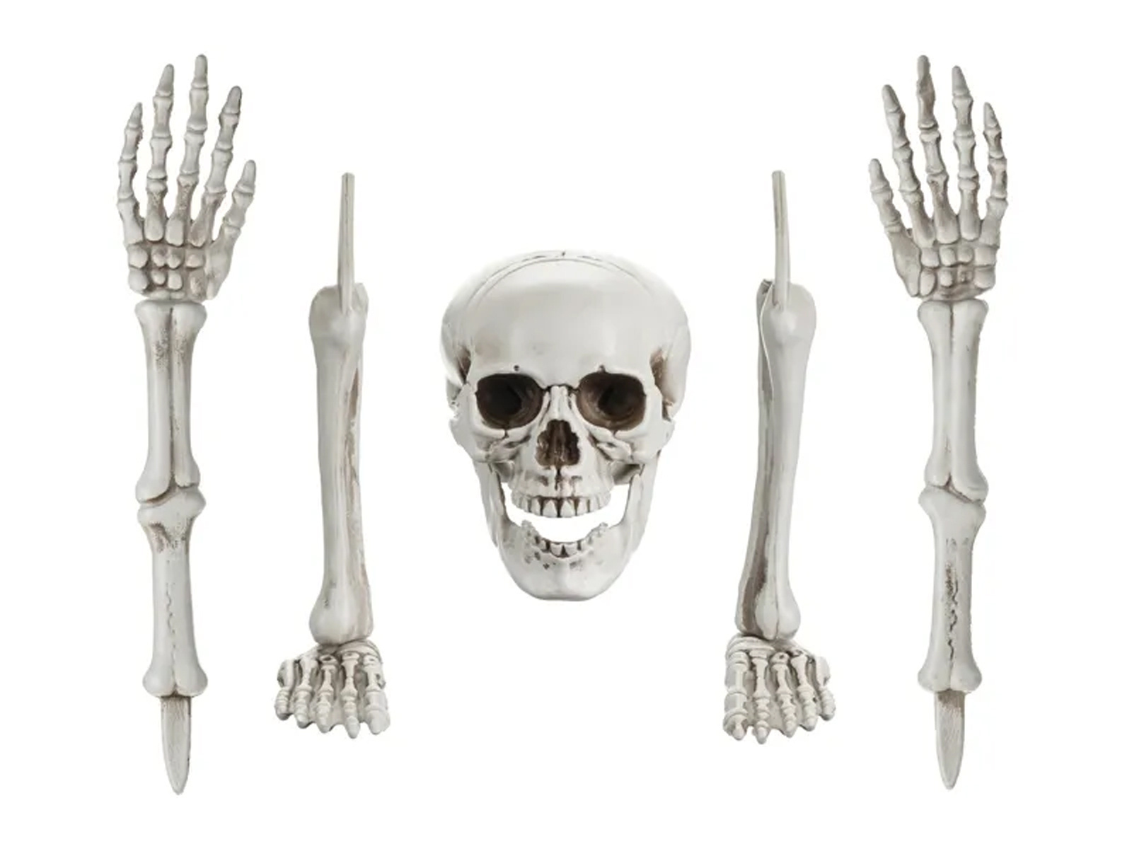 Setul include piese fabricate detaliate: craniu realist, brațe și picioare ale scheletului. Arme au o lungime de 42 cm, a picioare 30 cm, în timp ce dimensiunile craniului sunt 21x17 cm. Această dimensiune asigură vizibilitatea și eficiența decorațiunilor.