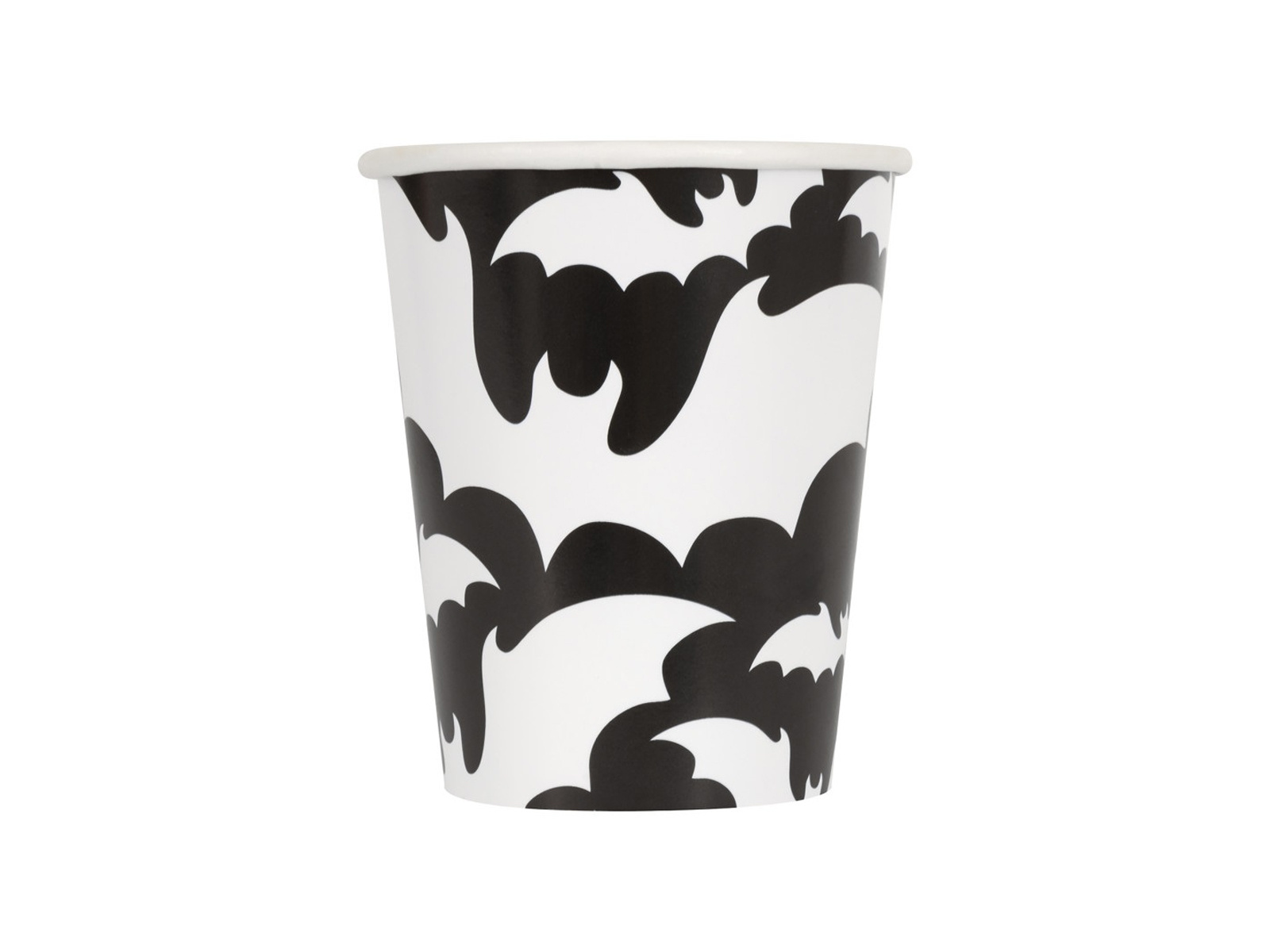 Cupe Halloween Bats - 266 ml - 8 buc. este alegerea perfectă pentru petrecerea acelor seri speciale, înfricoșătoare, alături de cei dragi. Aceste pahare de hârtie elegante decorate cu un motiv de lilieci negri pe un fundal alb vor adăuga un farmec unic la orice decor de masă de Halloween.