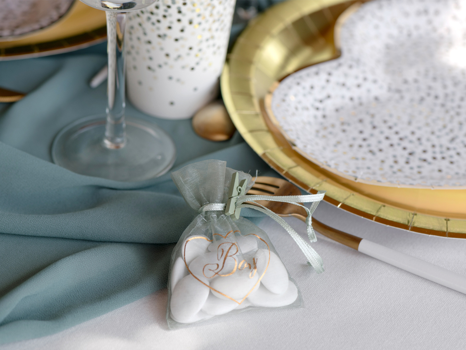 Pungi organza verde băiat - 7,5 x 10 cm - 6 buc.