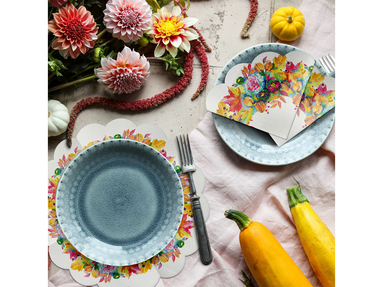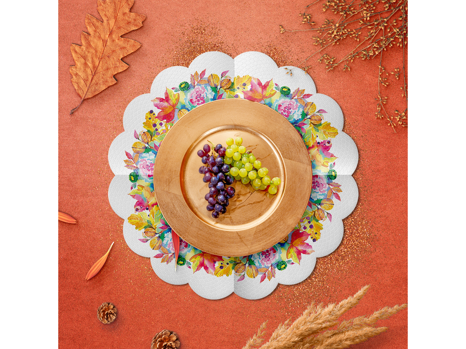 Șervețele rotunde Compoziție de toamnă - 32 cm - 12 buc.