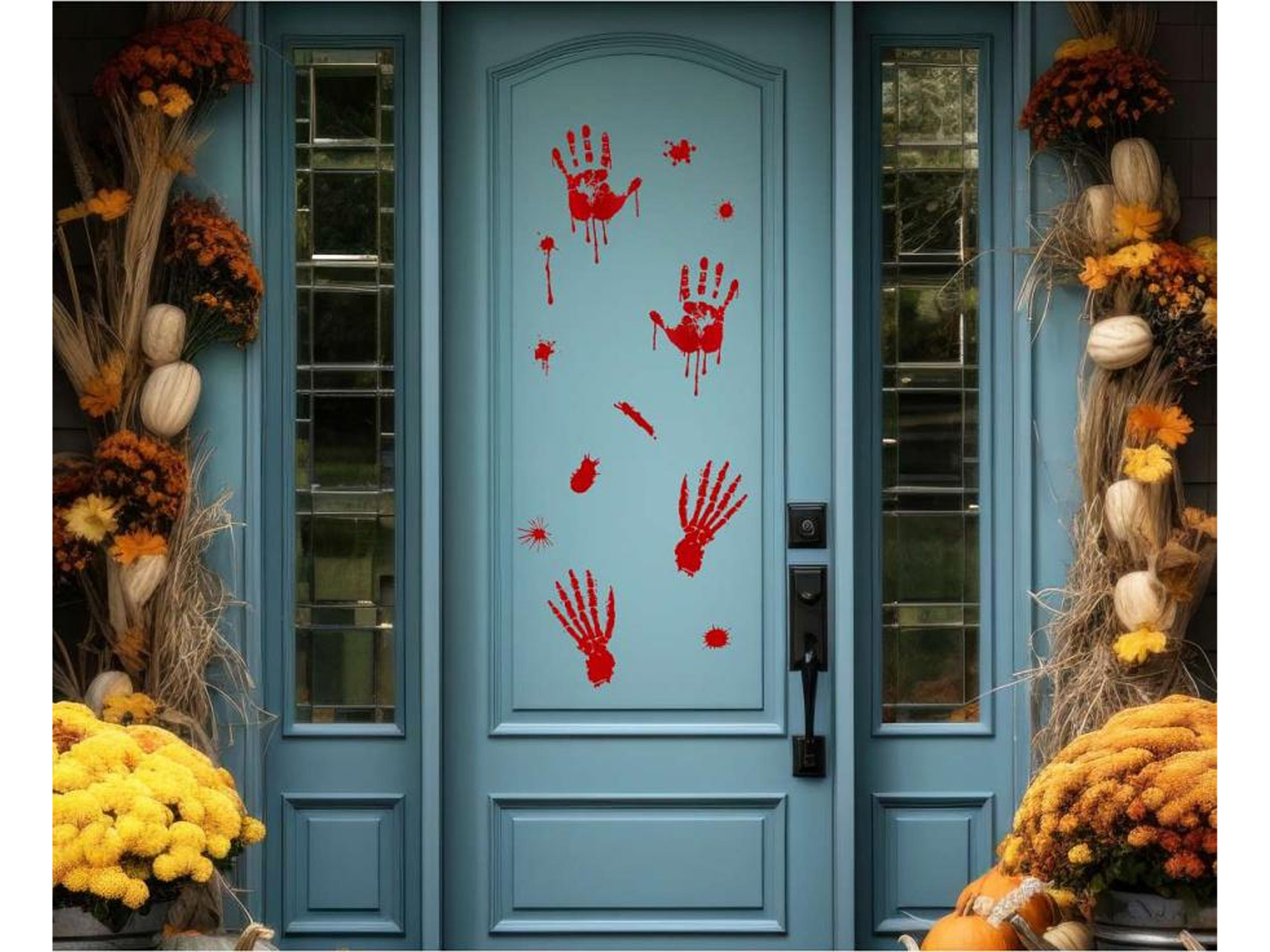 Autocolantele de 30 x 45 cm, reprezentând urme macabre de mâini însângerate, vor fi apreciate de toți iubitorii de decorațiuni misterioase și de groază. Este o propunere care va atrage atenția și vă va lăsa invitații uimiți.