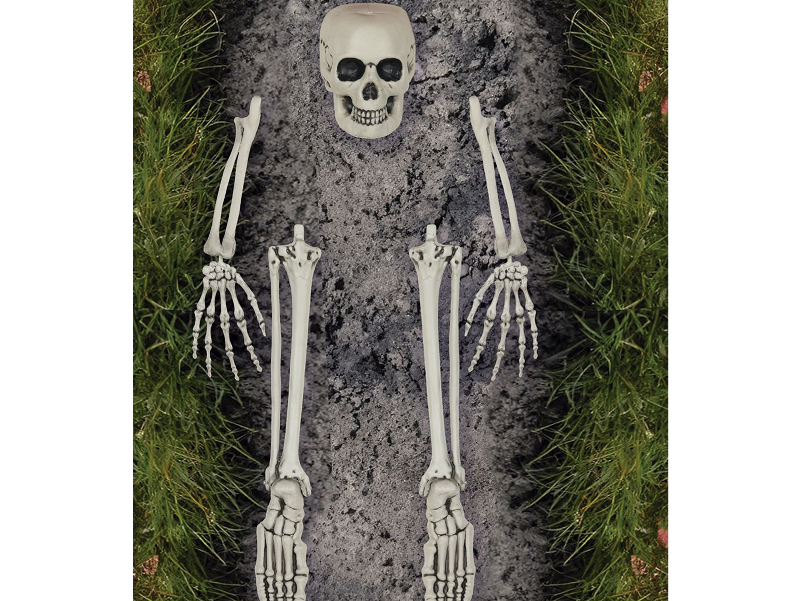 Planificați un uimitor Halloween cu setul de decorațiuni "Schelet îngropat"! Acest set original include un craniu, brațe și picioare cu aspect realist, care va fi perfect ca decor în grădină sau la o petrecere tematică. Acesta imită perfect un schelet parțial îngropat în pământ, ceea ce contribuie la atmosfera înfricoșătoare a oricărui spațiu.