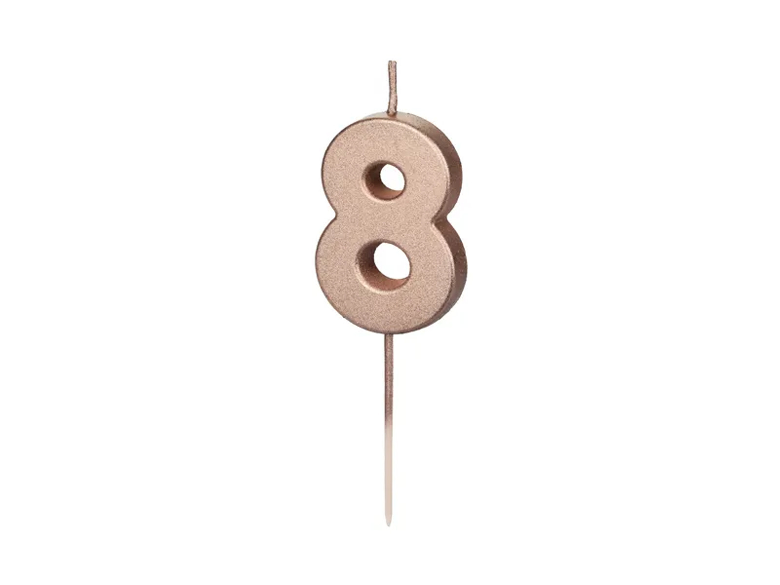 Numărul opt lumânare aur roz - 8 - 1 buc.