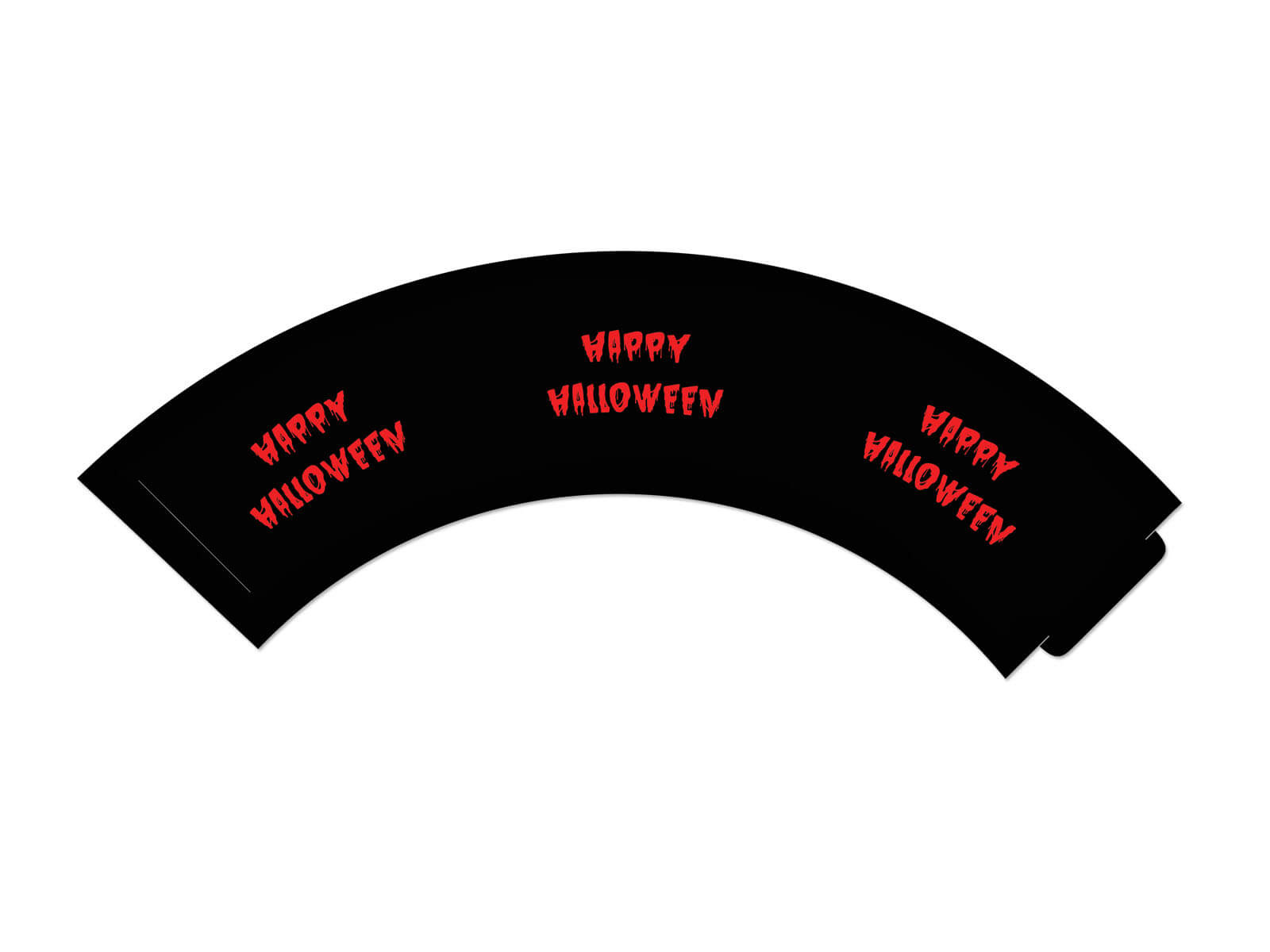Folii pentru cupcakes Halloween sângeros - 6 buc. - Cupe de brioșe în negru cu litere Halloween fericit gory. Servește ca decor pentru formele de brioșe. Dimensiuni când este pliat: 5 x 7 x 5 cm.