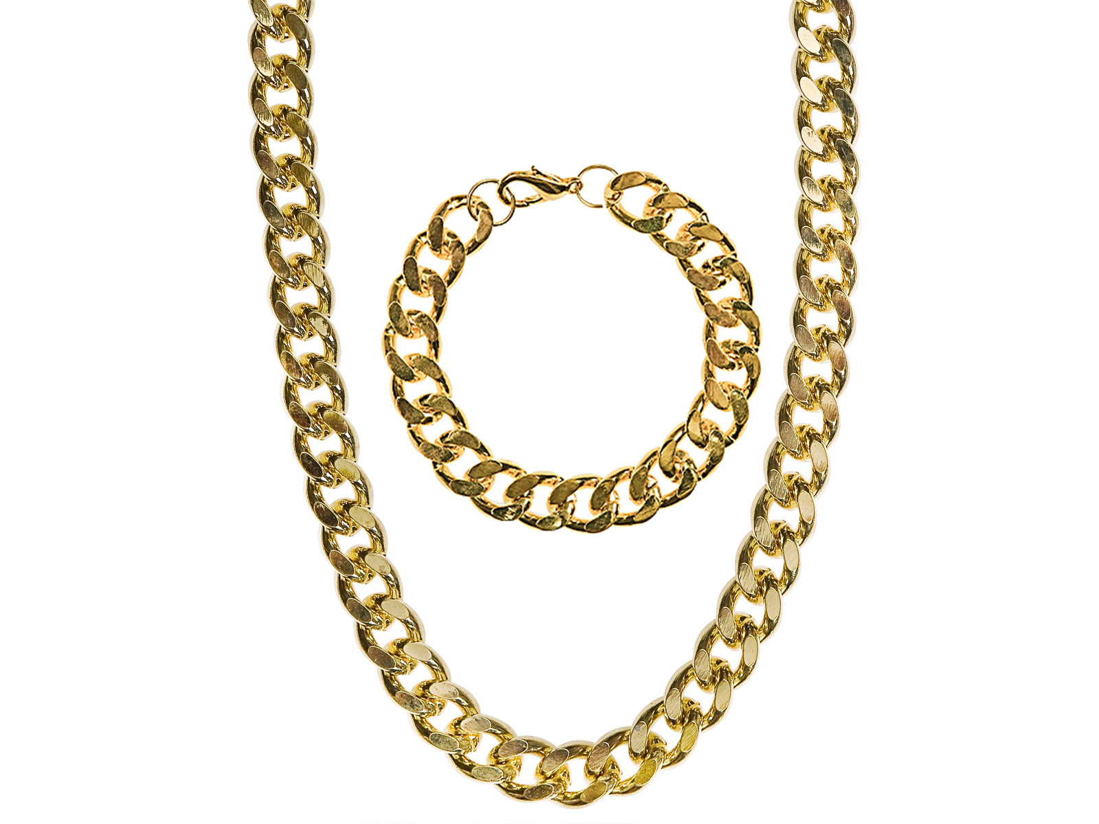 Descoperă-ți strălucirea interioară cu Kitul Gangster, care va completa perfect ținuta ta, conferindu-i un caracter irezistibil, de prădător. Fie că te pregătești pentru o petrecere retro de Halloween, o petrecere de carnaval, o petrecere a burlacilor sau orice alt eveniment tematic, acest kit va deveni cu siguranță accesoriul tău preferat. Setul include un elegant lanț și brățară în auriu, care este perfect pentru un rapper, proxenet sau costum de proxenet. Realizate cu atenție la detalii și imitând perfect aurul, acestea vor adăuga o notă luxoasă oricărei ținute. Pregătiți-vă să faceți o impresie memorabilă la orice eveniment!