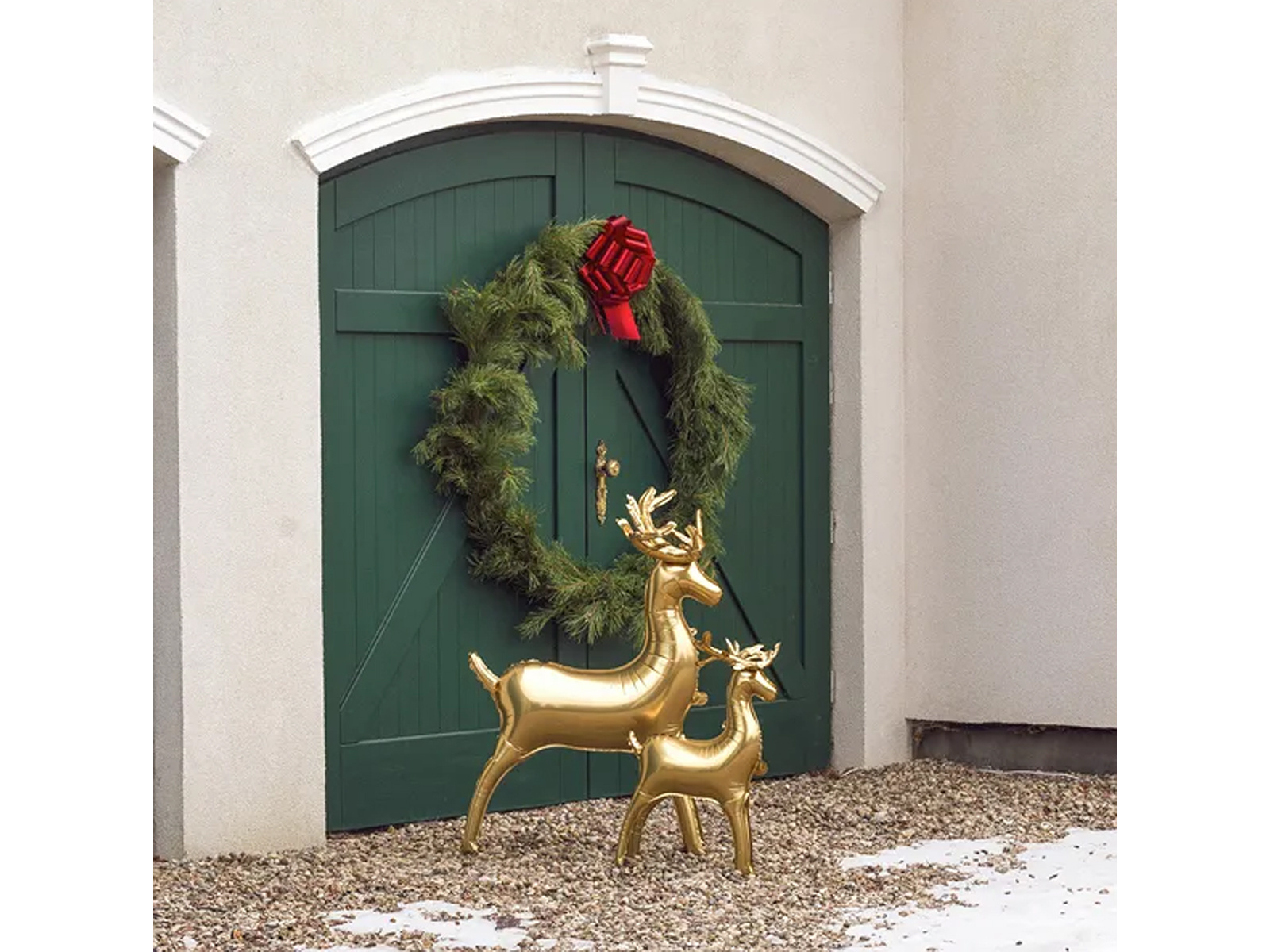 Primiți Crăciunul într-un mod de neuitat cu balonul nostru auriu în formă de ren. Acest accesoriu fermecător măsoară 63 x 51 cm este ideal pentru decorarea casei sau a zonei de recepție. Fabricat din folie de înaltă calitate, acesta garantează durabilitate și un aspect remarcabil pe tot parcursul perioadei festive.