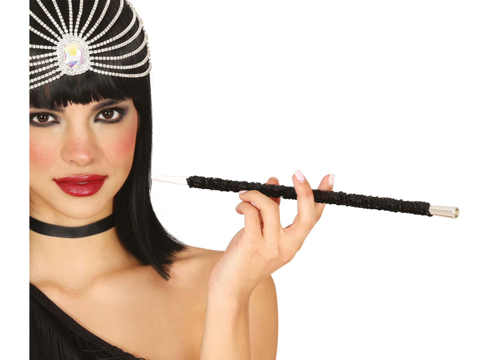 Descoperiți farmecul nostalgic al anilor 1920 cu eleganta noastră Țigaretă retro neagră. Accesoriul perfect pentru petreceri tematice, jocuri de carnaval, Revelion sau orice altă ocazie specială. Confecționată cu precizie și împodobită cu paiete strălucitoare, va adăuga strălucire oricărei ținute.