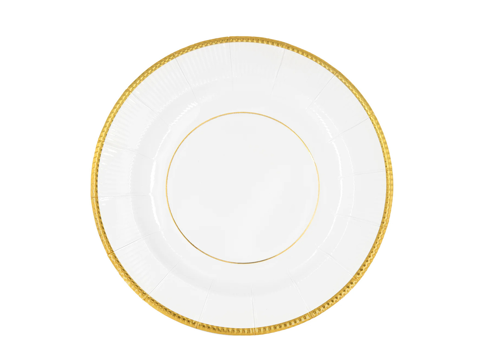 Farfurii de hârtie Elegant Gold alb - 20,5 cm - 6 buc.
