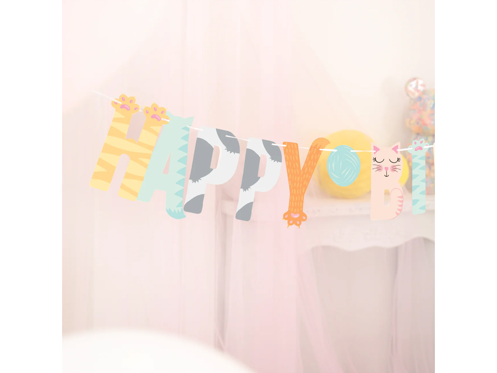 Fericit aniversare pisici banner - 200 cm - 1 buc.