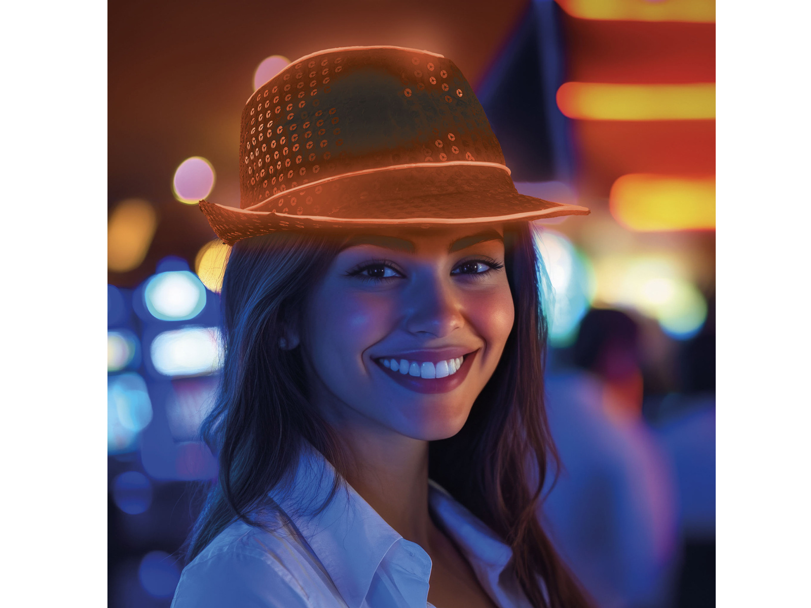 Transformați orice petrecere într-un eveniment de neuitat cu Pălărie LED portocalie. Această pălărie neagră elegantă are dungi LED portocalii izbitoare care se vor aprinde pentru a adăuga o notă de farmec oricărui look. Este perfect pentru tot felul de ocazii - de la distracția din ajunul Anului Nou, la nopțile întunecate de Halloween, la paradele colorate de carnaval.