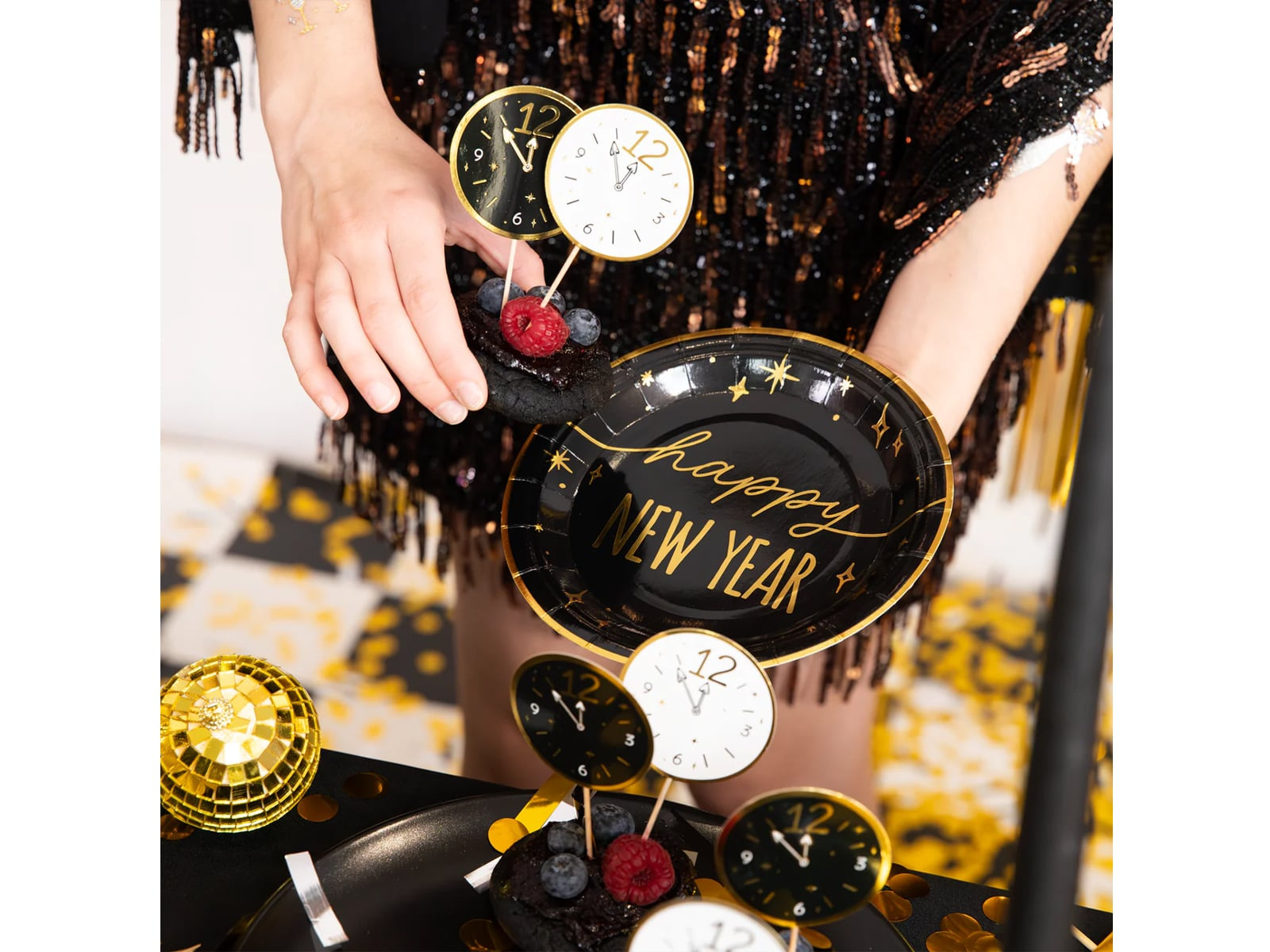Farfurii de hârtie Happy New Year negru - 18 cm - 6 buc.