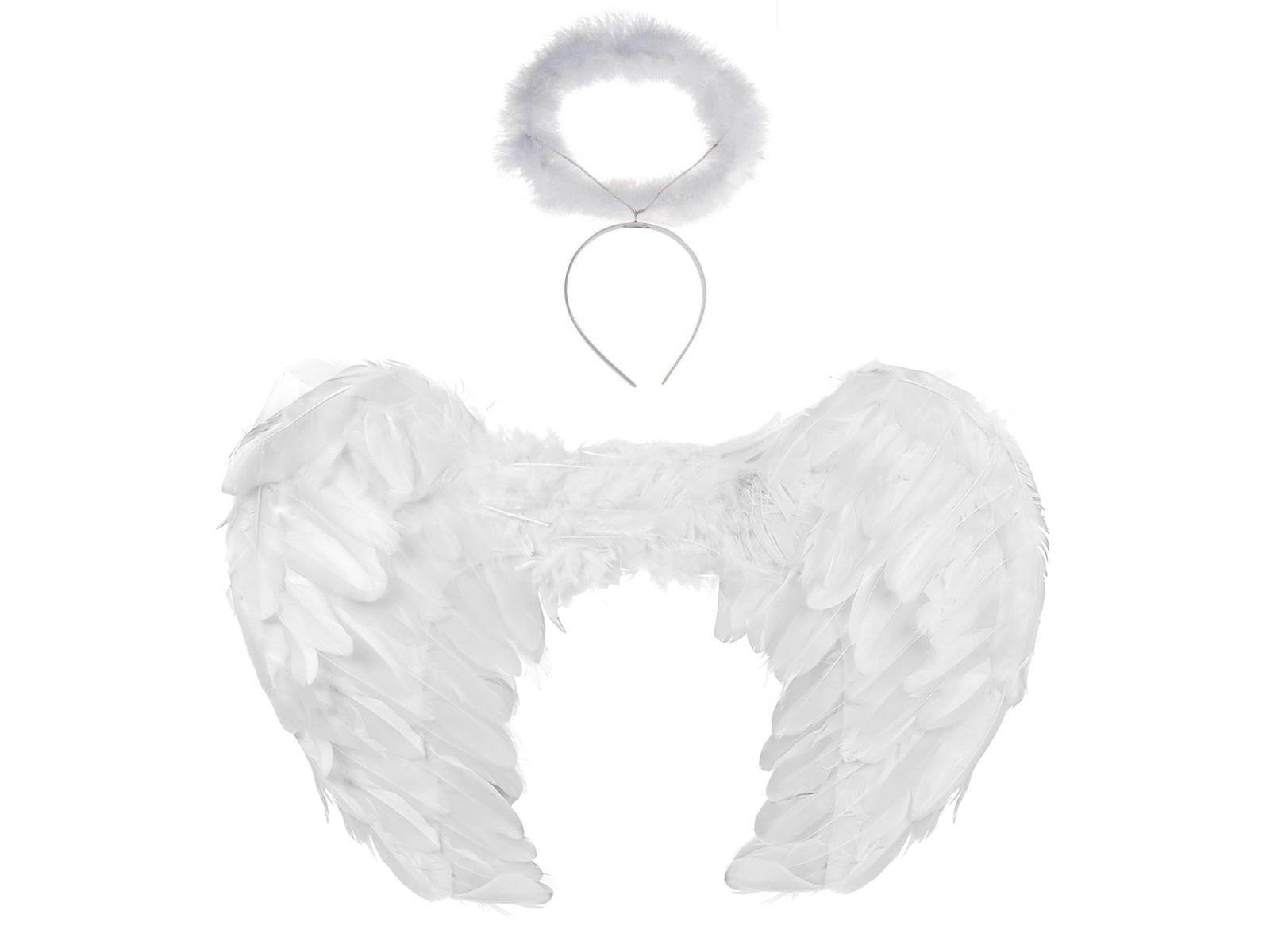 Set de aripi de înger alb 60 x 45 cm și Aureole