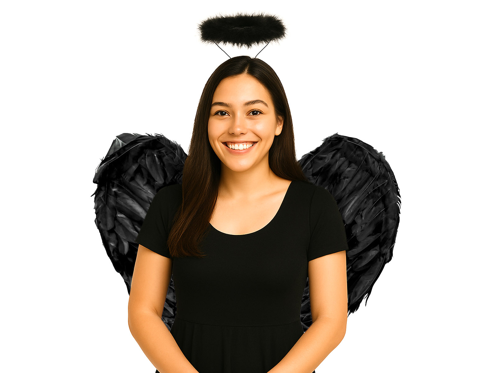 Aripi de înger negre cu aureolă - 60 x 45 cm - 1 buc.