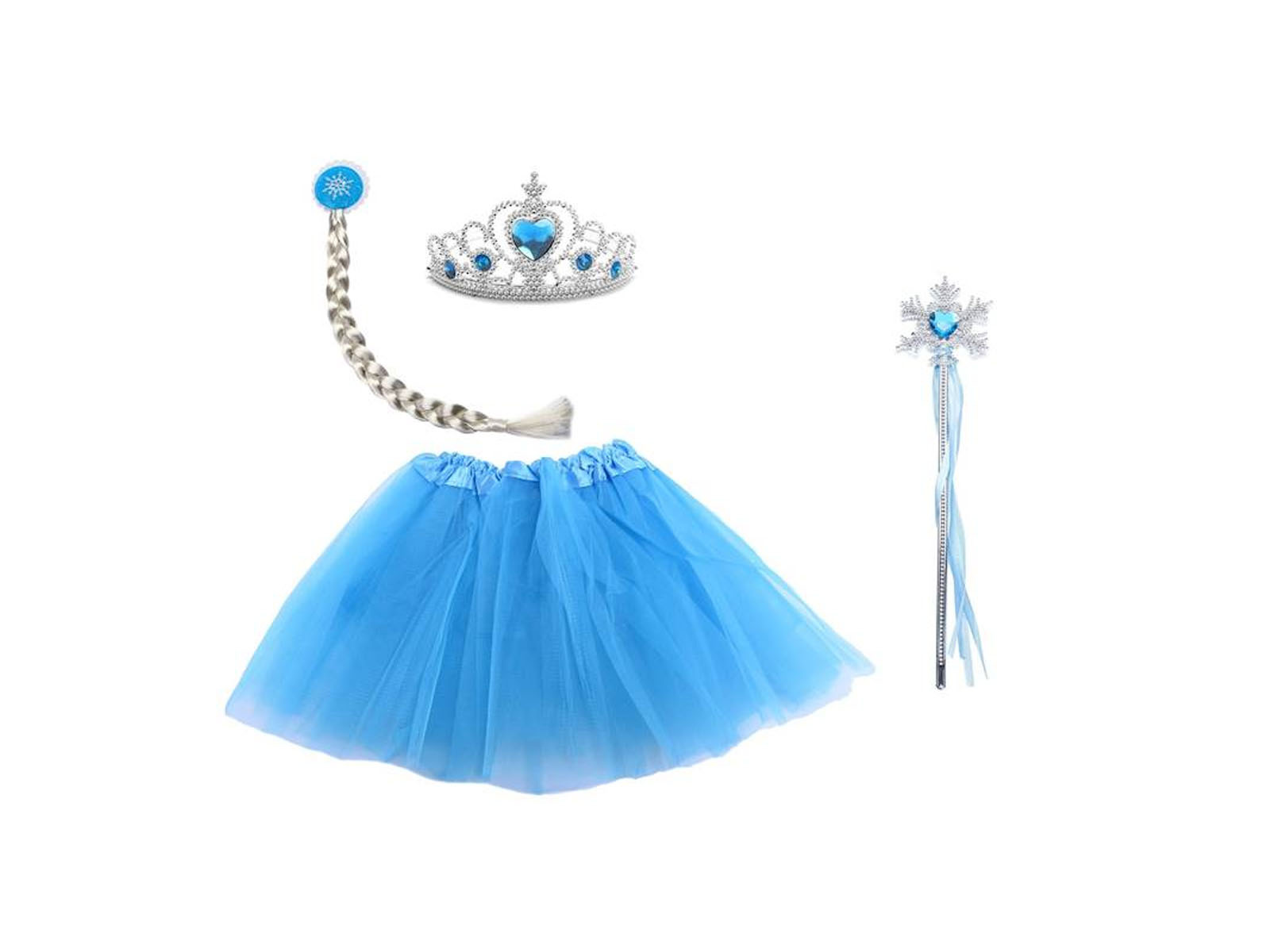 Setul include un elegant fustă din tul, care strălucește cu fiecare mișcare, făcând fiecare fată să se simtă ca o adevărată eroină. În plus, ținuta este completată cu o baghetă, regal tiară și marca înregistrată a Elsei împletitură, care completează întreaga creație.