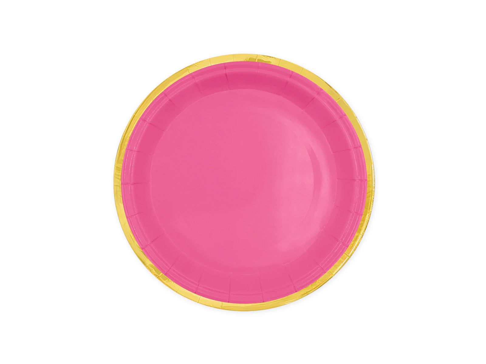 Farfurii fucsia cu margine aurie - 18 cm - 6 buc.