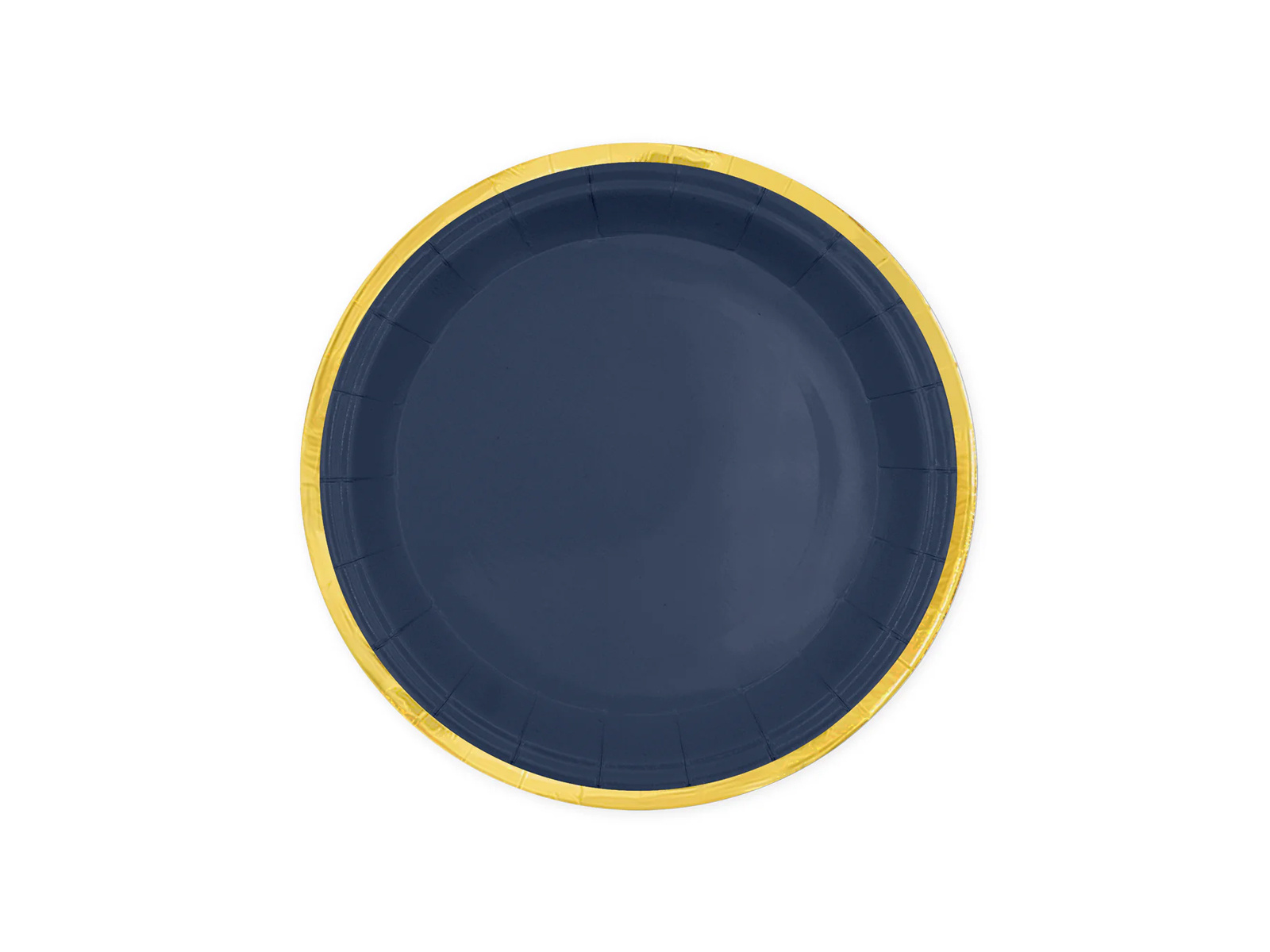 Farfurii albastru marin cu margine aurie - 18 cm - 6 buc.