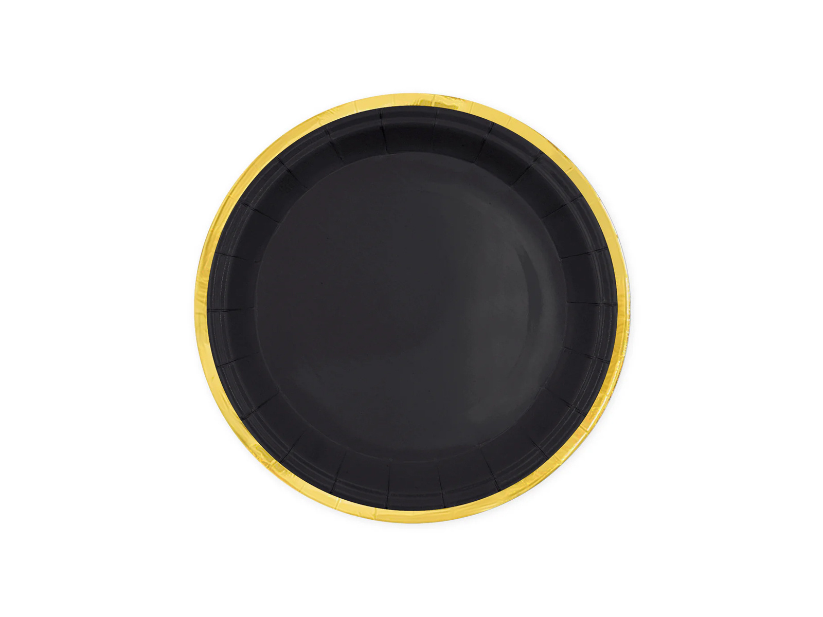 Farfurii negre cu margine aurie - 18 cm - 6 buc.