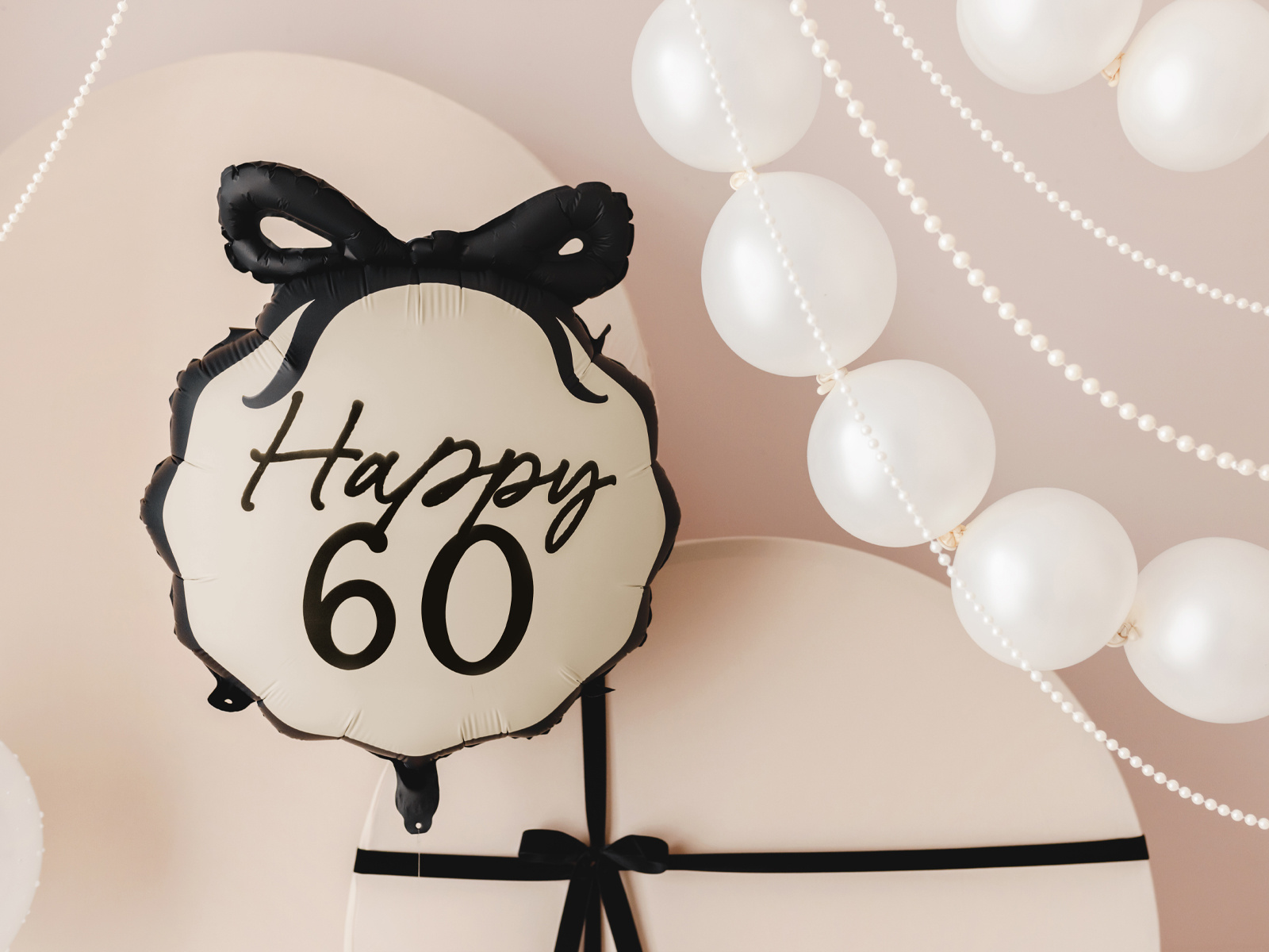 Balon din folie cu fundiță Happy "60" - 47.5 x 45 cm - 1 buc.