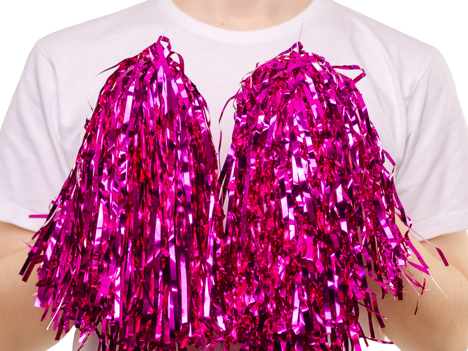 Pompoane roz metalizat pentru majorete - 2 buc.