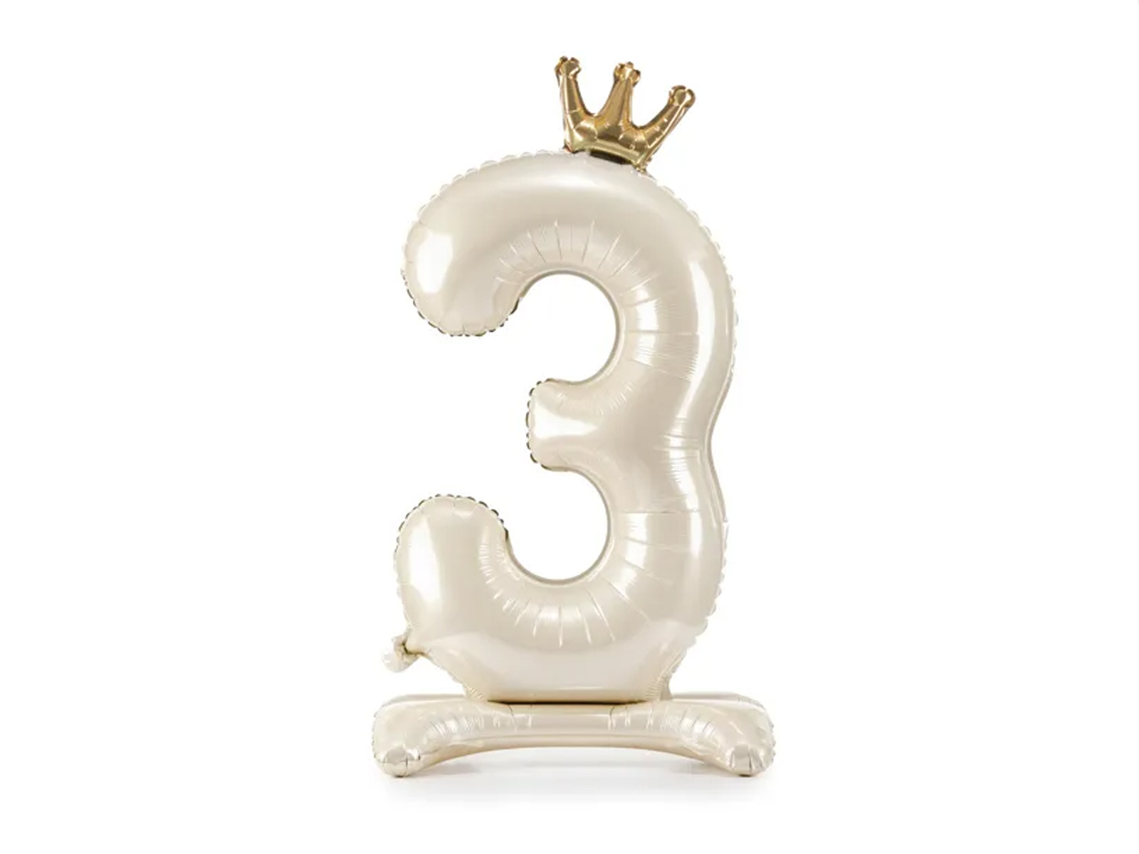 Balon vertical din folie numărul 3 crem cu coroană - 84 cm - 1 buc.