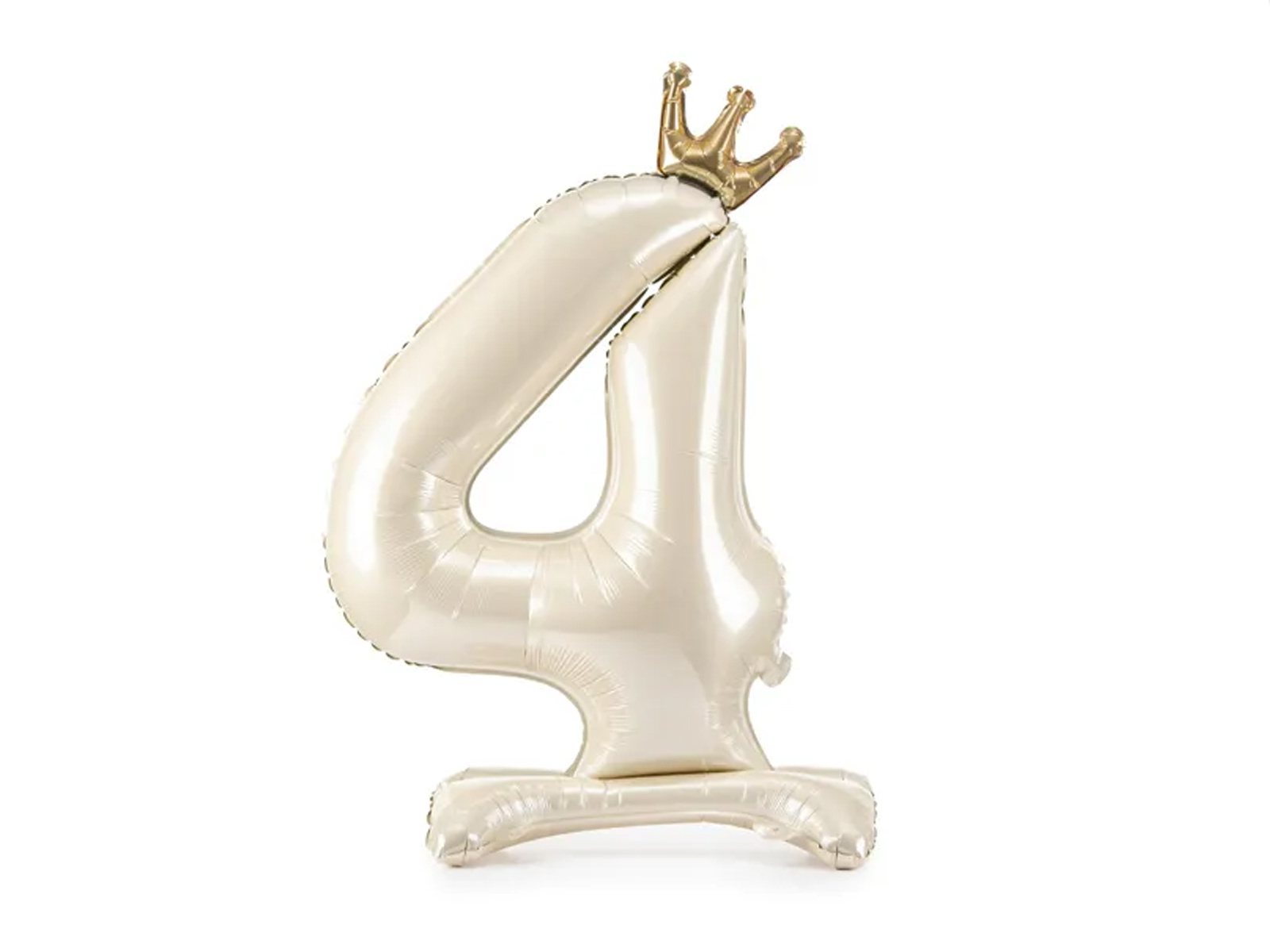 Balon vertical din folie numărul 4 crem cu coroană - 84 cm - 1 buc.