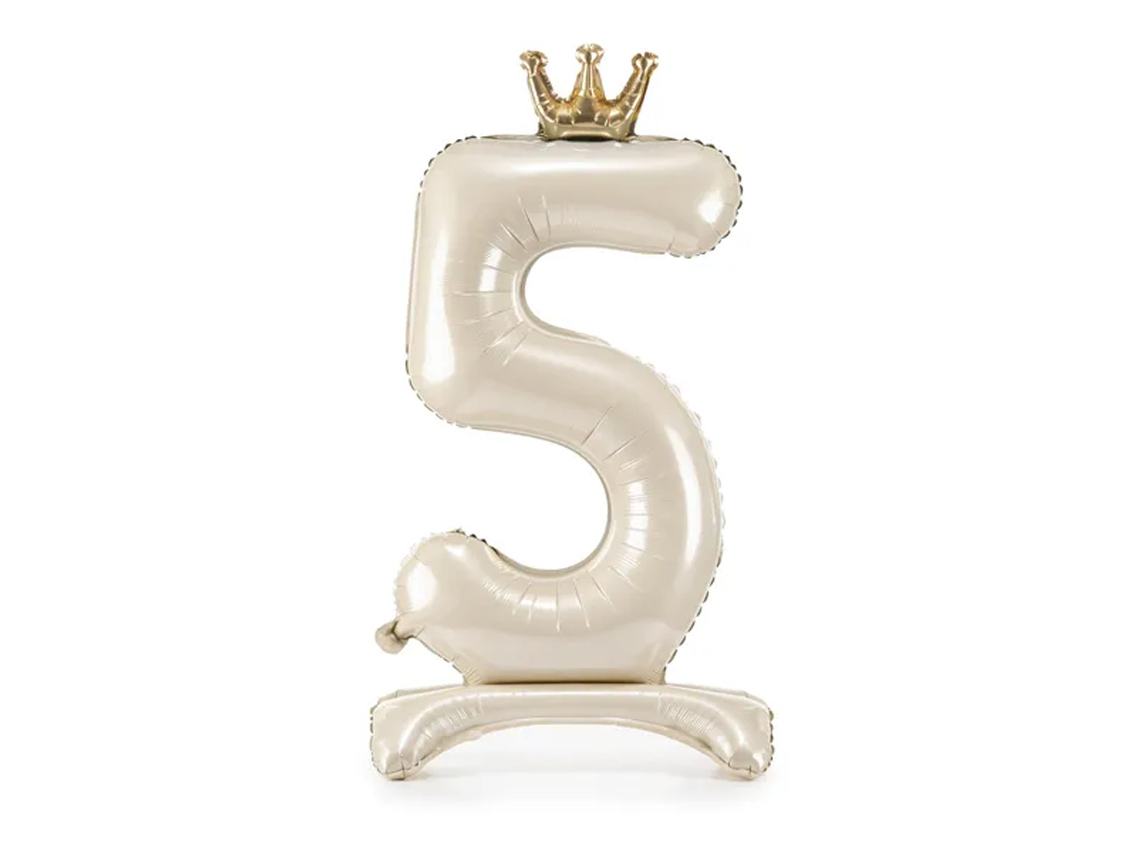 Balon vertical din folie numărul 5 crem cu coroană - 84 cm - 1 buc.