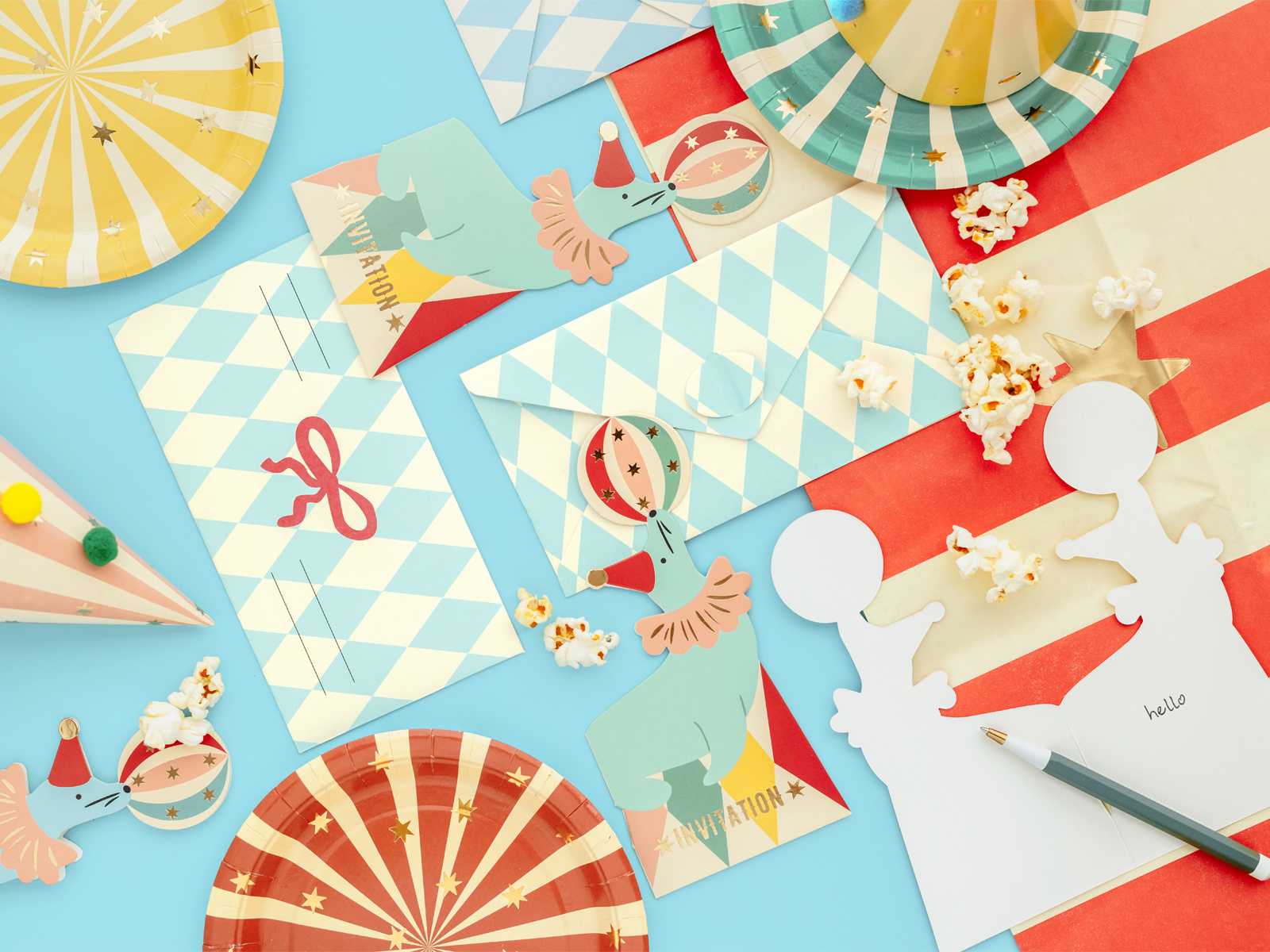 Invitații aniversare cu plicuri Circus - 6 buc.