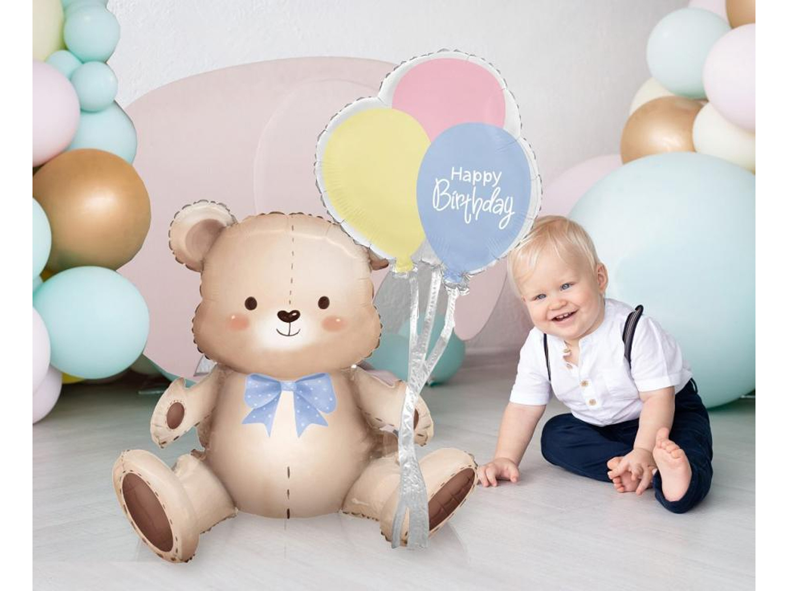 Balon ursuleț Teddy cu baloane Happy Birthday - 41 x 76 x 31 cm - 1 buc.