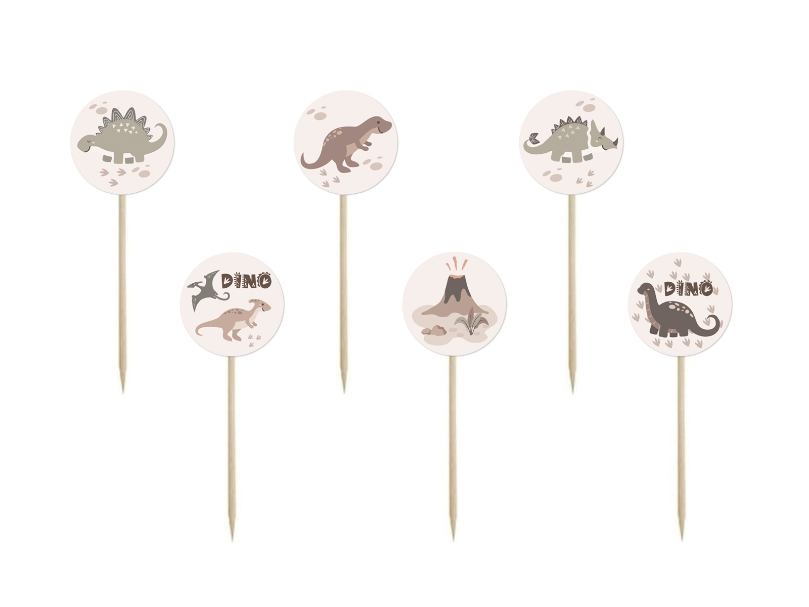 Aduceți magia aventurilor preistorice la petrecerea dvs. aniversară cu toppers de tort dinozauri. Setul include șase vârfuri de hârtie cu imprimeuri colorate cu dinozauri pentru a înveseli orice tort, prăjitură sau brioșă. Aceste decorațiuni distinctive sunt perfecte pentru petrecerile tematice pentru copii, oferind produselor de patiserie dulci un aspect unic.