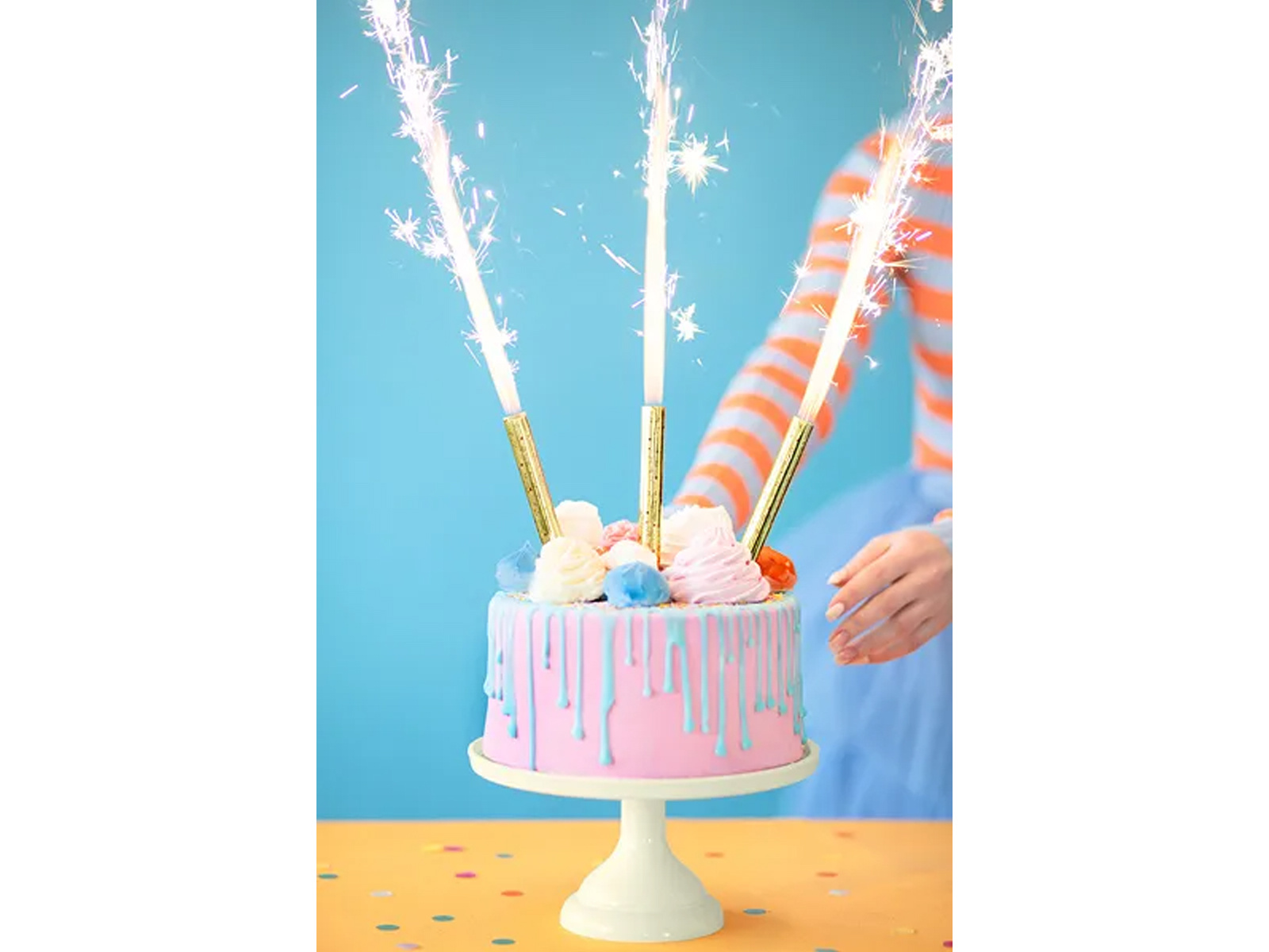 Setul include patru piese, astfel încât să puteți ajusta numărul de efecte în funcție de mărimea tortului și de numărul de invitați. Fântânile de tort sunt ideale pentru toate tipurile de evenimente - de la zile de naștere la Revelion, de la carnavaluri la petreceri de absolvire și burlaci.