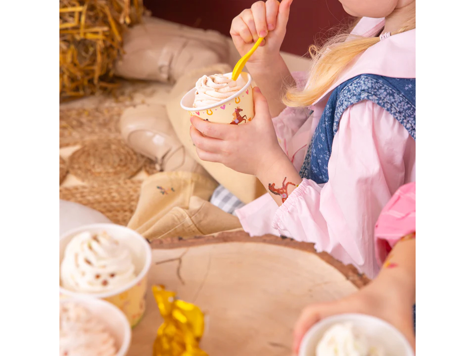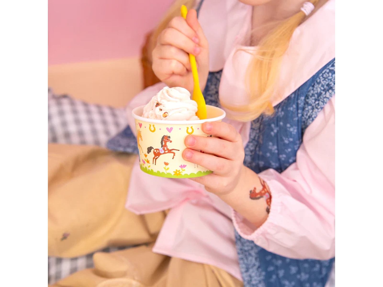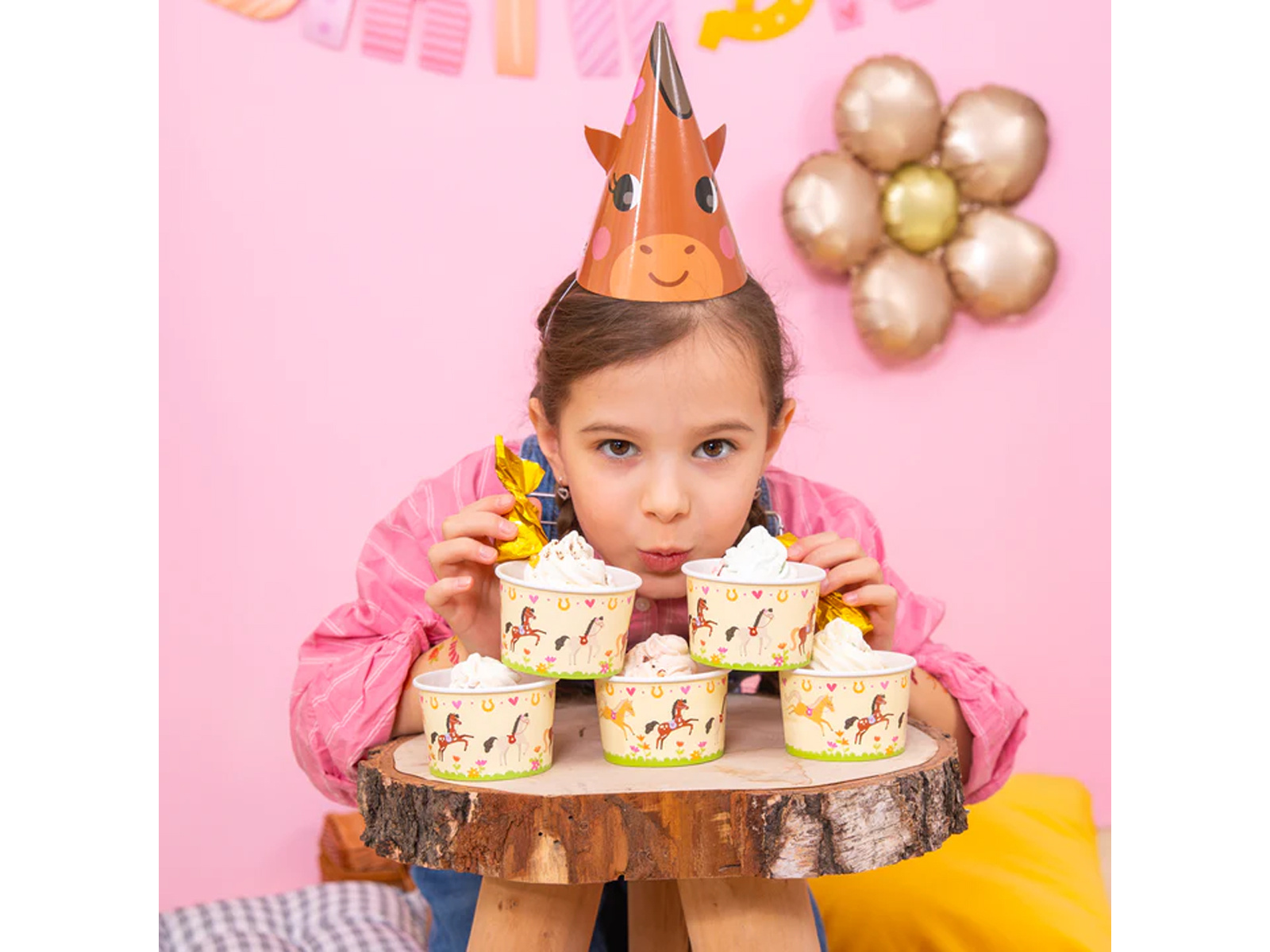Răsfățați-vă cu un desert în stil fantastic! Cupele de înghețată "Horsies" sunt ideale pentru petrecerea aniversară a copilului dvs. Fiecare ceașcă este decorată cu motive încântătoare de cai care vor adăuga magie oricărei petreceri. Nu doar pentru înghețată - aceste cupe versatile sunt, de asemenea, excelente pentru a servi o varietate de gustări, atât dulci, cât și sărate.