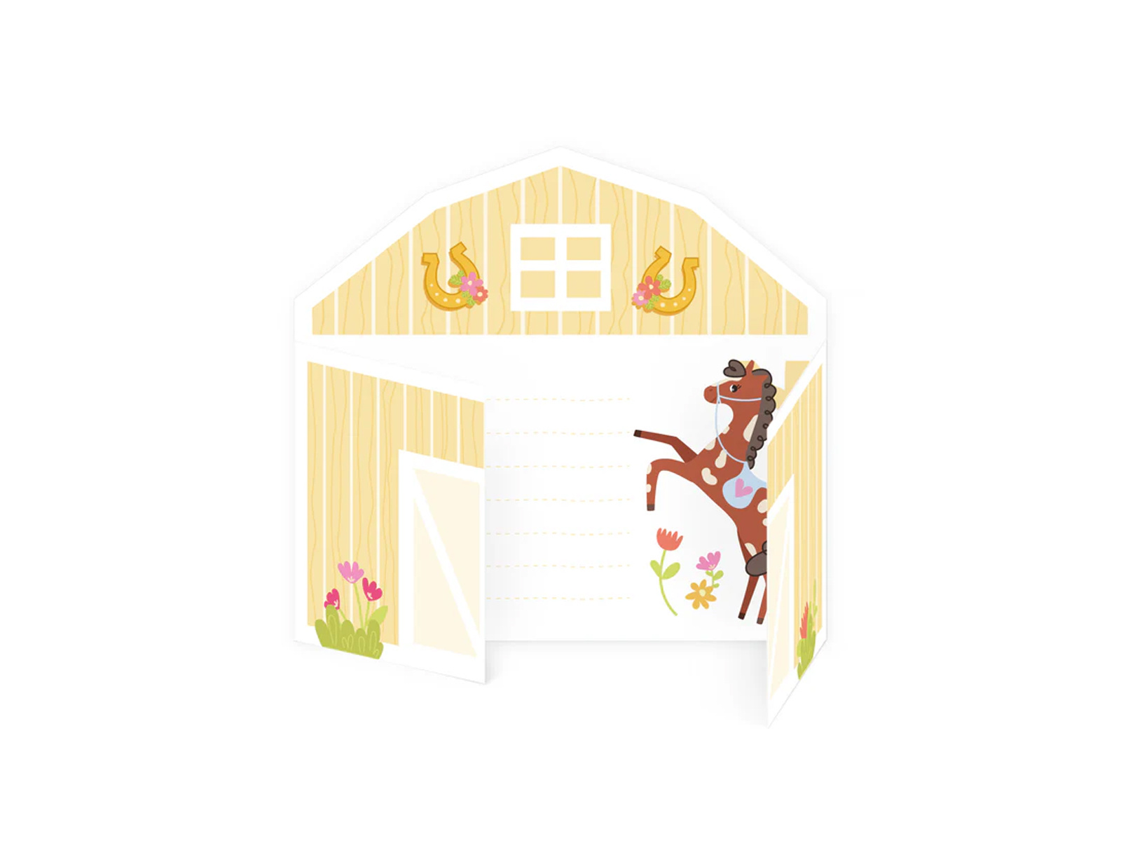 Organizați o petrecere aniversară de neuitat pentru copilul dvs. cu invitațiile noastre adorabile cu tema calului! Acest set este perfect pentru orice mic iubitor de cai și va oferi un început elegant pentru orice petrecere aniversară. Setul conține 6 invitații cu plicuri potrivite pentru a vă ajuta să vă pregătiți pentru ziua cea mare.