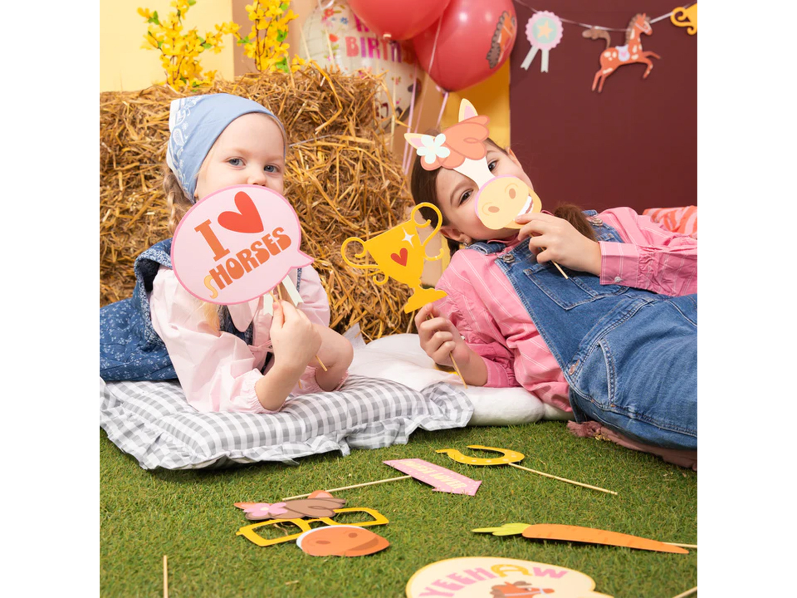 Inclus veți găsi o varietate de modele și forme pentru a adăuga culoare și distracție fotografiilor dvs. Ideal pentru o cabină foto sau ca decor de masă la o petrecere.Fie că planificați o sărbătoare în interior sau în aer liber, acești ponei adorabili vor fi un accesoriu foto minunat pentru a păstra amintirile cu noi pentru anii următori. Acestea se potrivesc bine cu alte decorațiuni pentru petreceri tematice și sunt un element interesant care încurajează copiii să se joace și să pozeze.