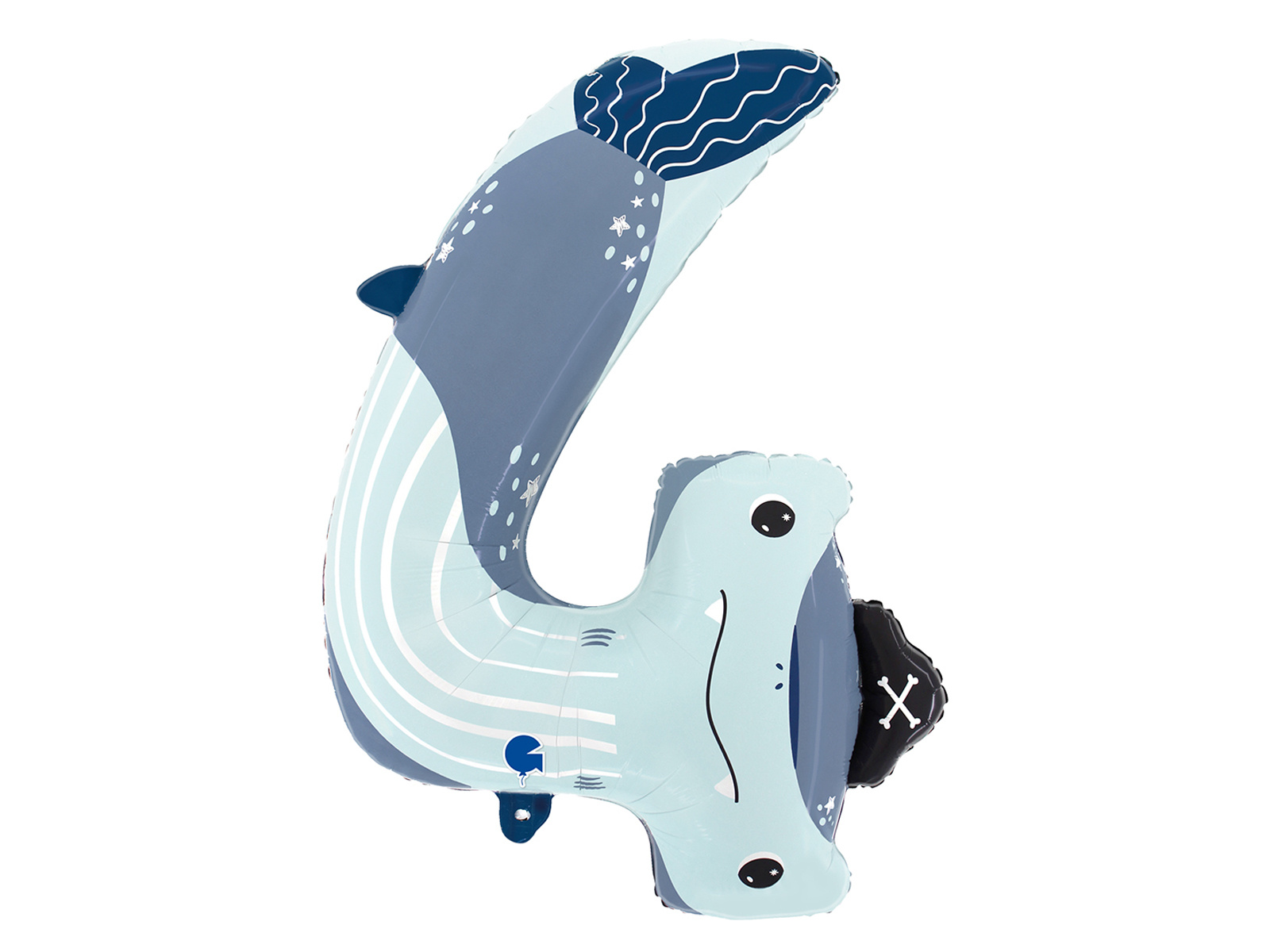 Balon din folie numărul 4 Rechin - 62x88 cm - 1 buc.
