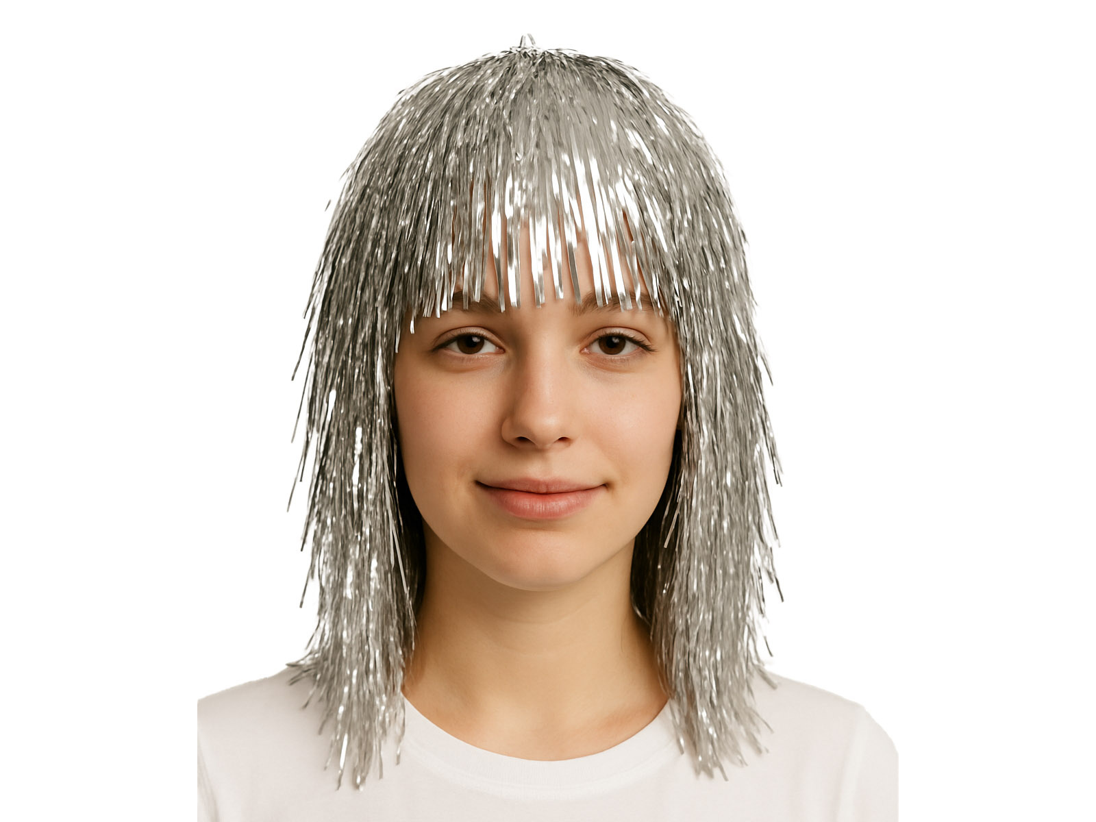 Peruca din folie argintie - 1 buc.