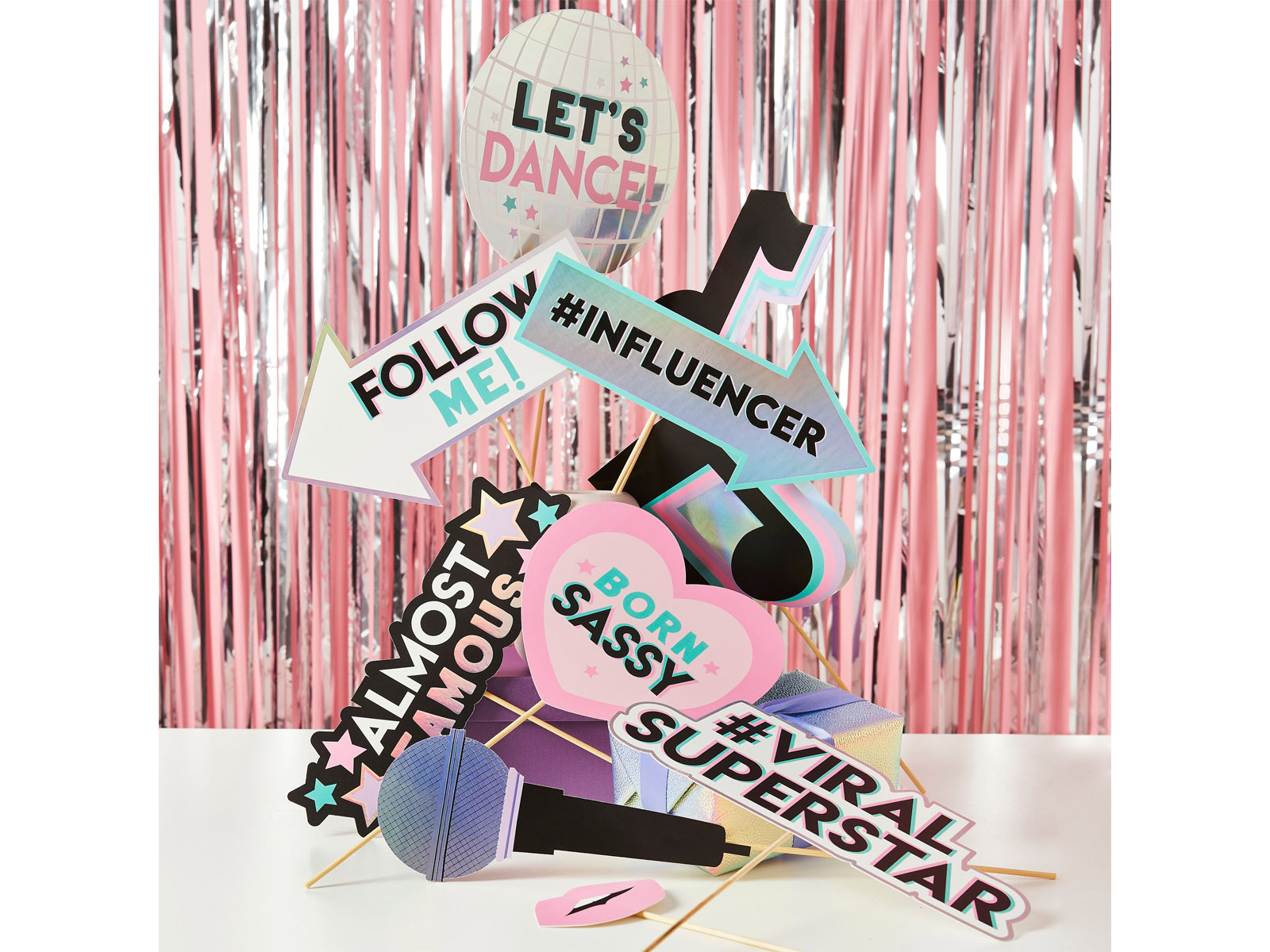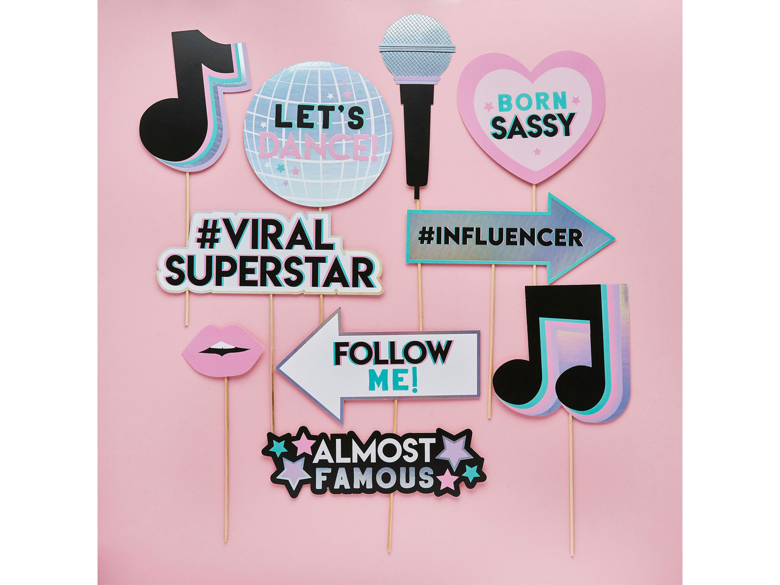 Produsul constă din 10 recuzite asortate realizate din hârtie de înaltă calitate, care sunt montate pe bețe de lemn rezistente pentru ușurință în utilizare și durabilitate. Temele muzicale se potrivesc perfect cu petrecerile tematice, adăugând creativitate suvenirurilor dvs. fotografice.