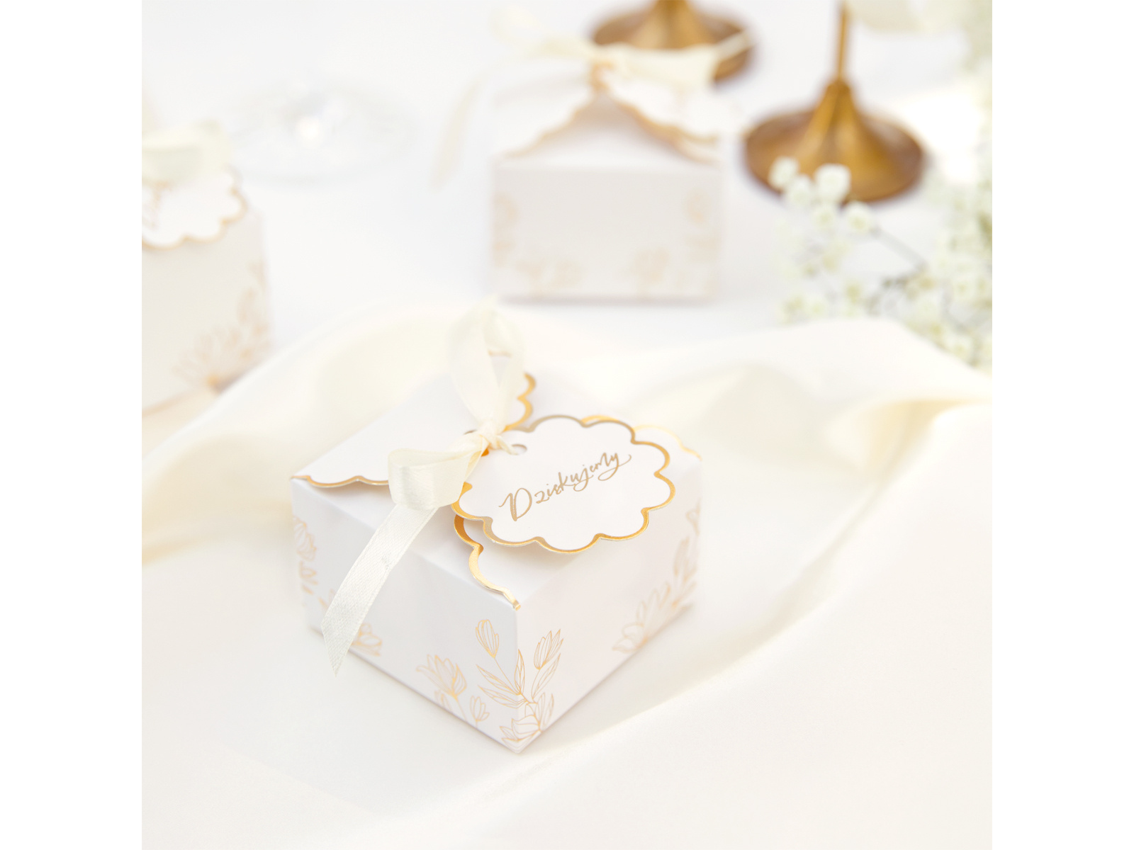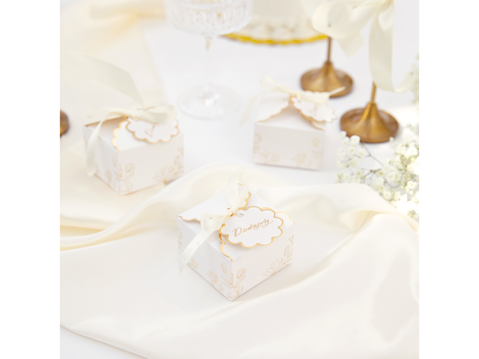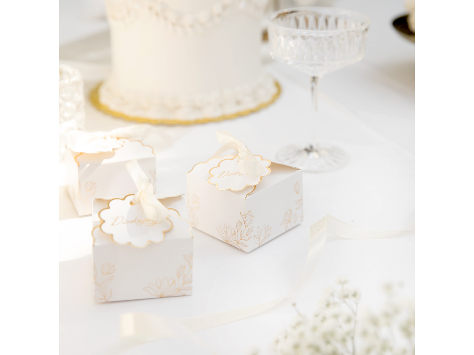Setul include: 10 cutii, 10 etichete, 10 panglici cu lungimea de 39 cm.