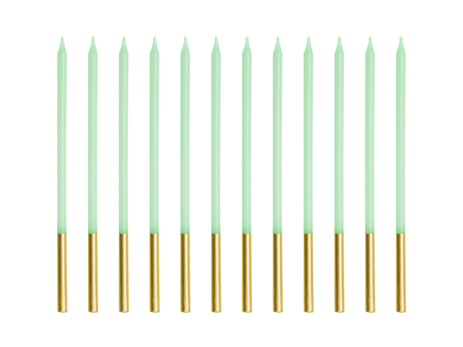 Lumânări de aniversare verzi și aurii - 14 cm - 12 buc.