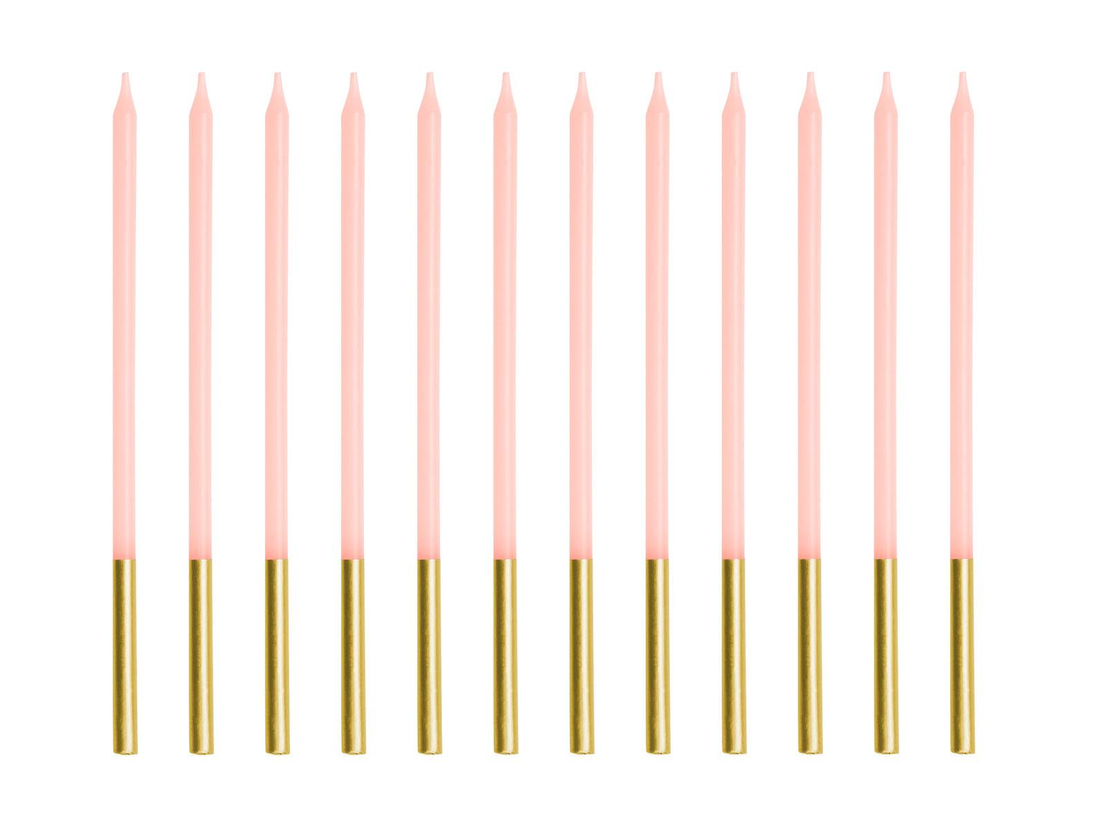 Lumânări aniversare roz și aurii - 14 cm - 12 buc.