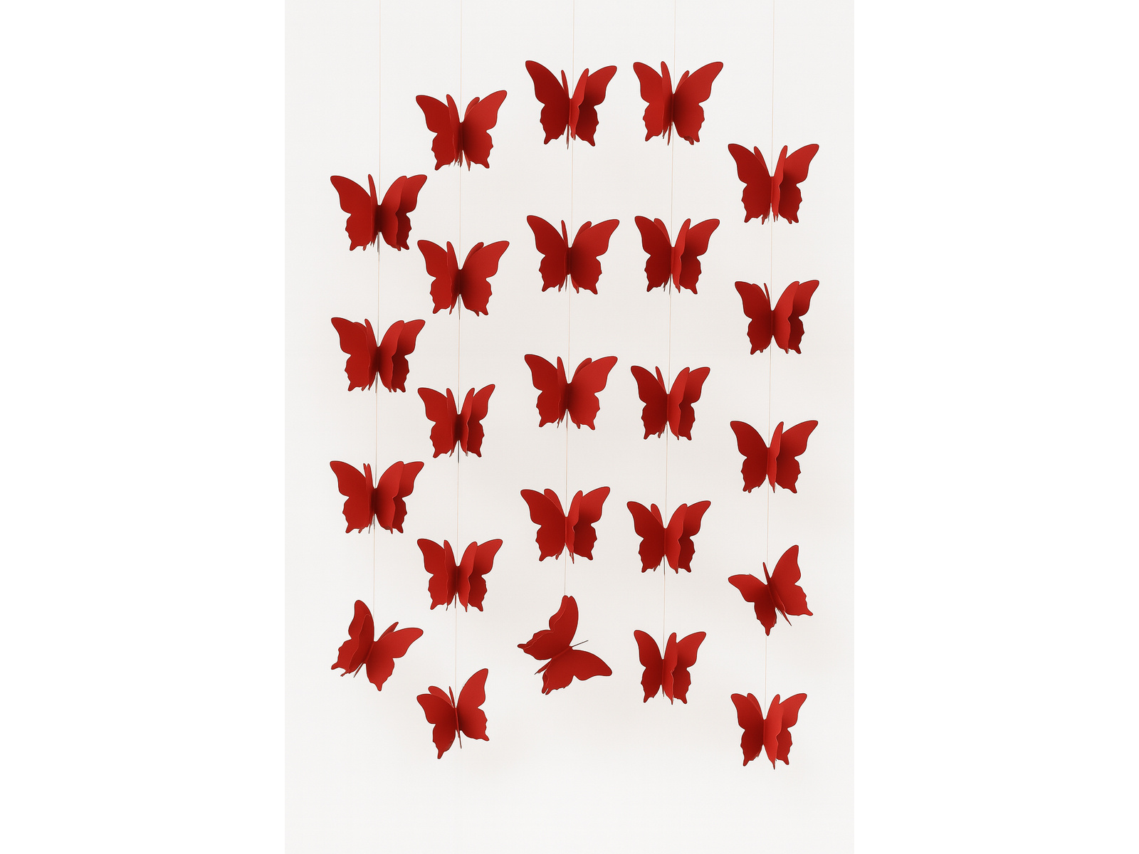 Decor suspendat Fluturi roșu - 3 m - 1 buc.