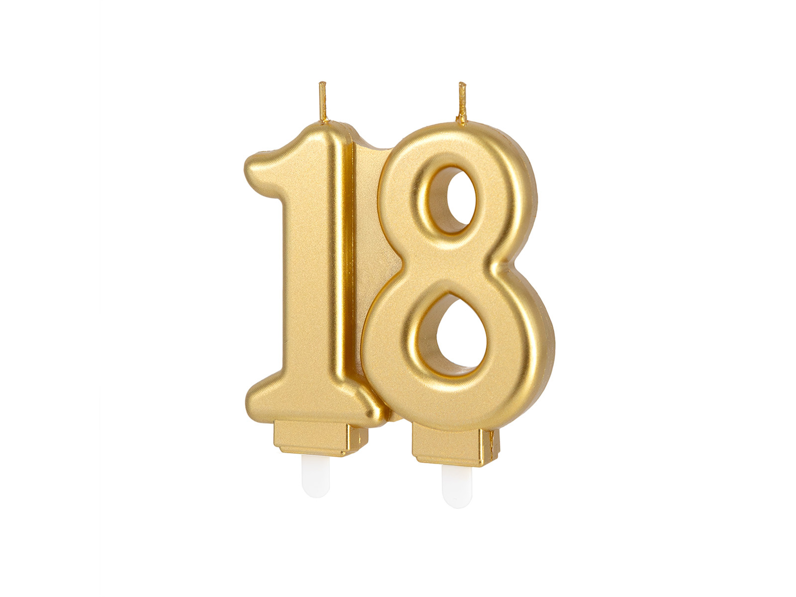 Lumânare aurie pentru a 18-a aniversare - 7,5 cm - 1 buc.